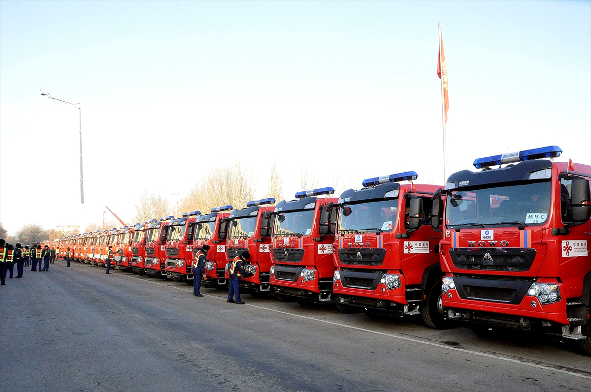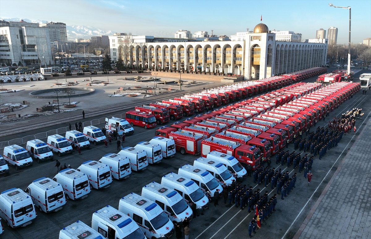 Kırgızistan'ın başkenti Bişkek'teki Ala-Too Meydanı'nda, Cumhurbaşkanı Sadır Caparov ve Çin'in Bişkek Büyükelçisi Du Dewen'in katılımıyla, Acil Durumlar Bakanlığı, Sağlık Bakanlığı ve Bişkek Belediye Başkanlığı'na yeni özel ekipman teslim töreni düzenlendi.