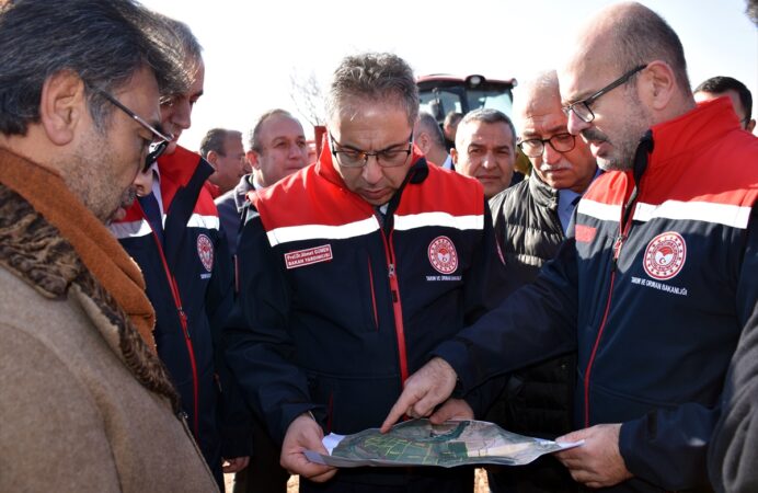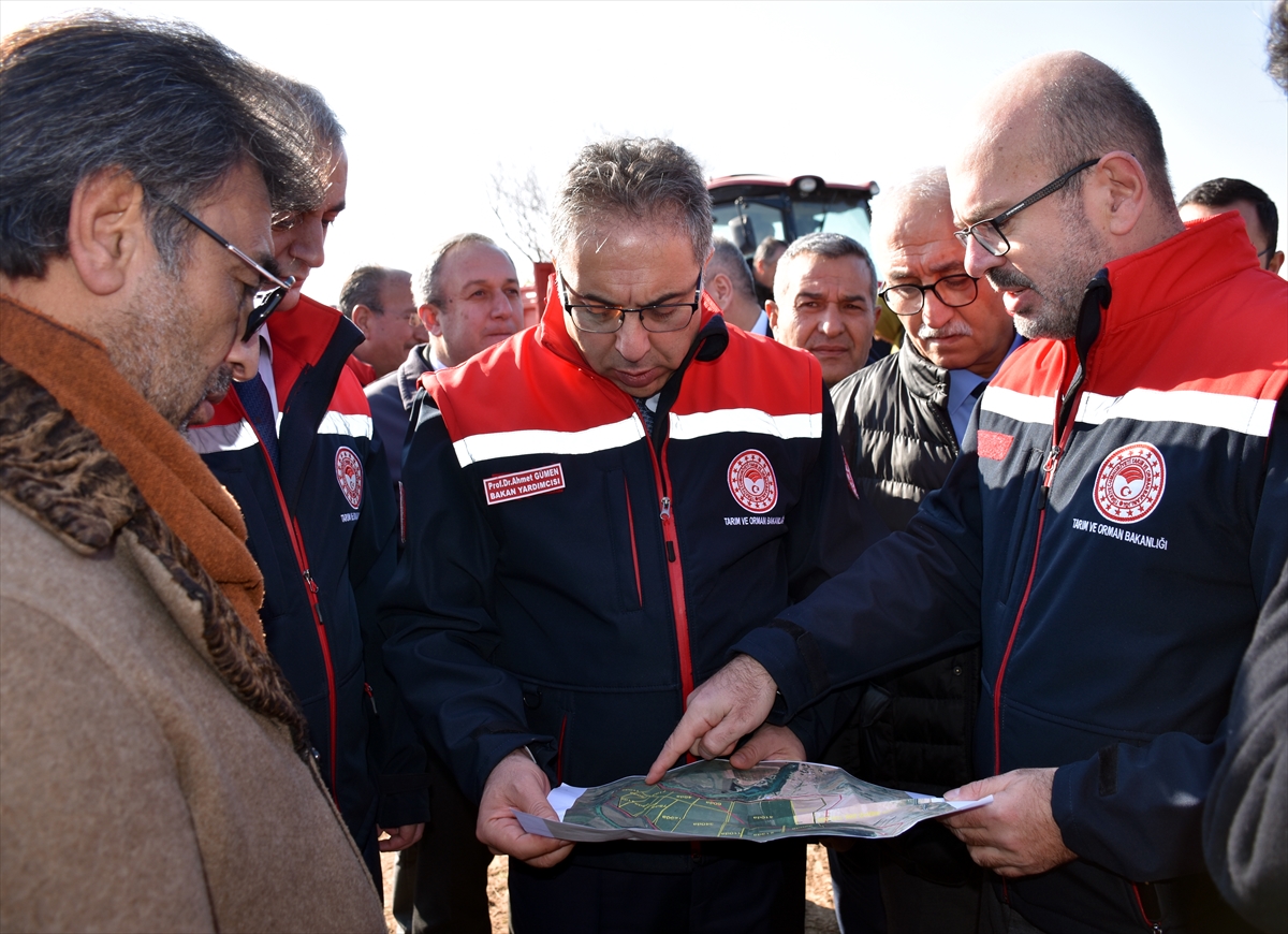 Eğribük mevkisindeki ekime katılan Tarım ve Orman Bakan Yardımcısı Ahmet Gümen, alanla ilgili Bitkisel Üretim Genel Müdür Yardımcısı İhsan Emiralioğlu, Belediye Başkanı Hüseyin Özçelik ile İl Tarım ve Orman Müdürü Fatih Ateş'ten bilgi aldı.