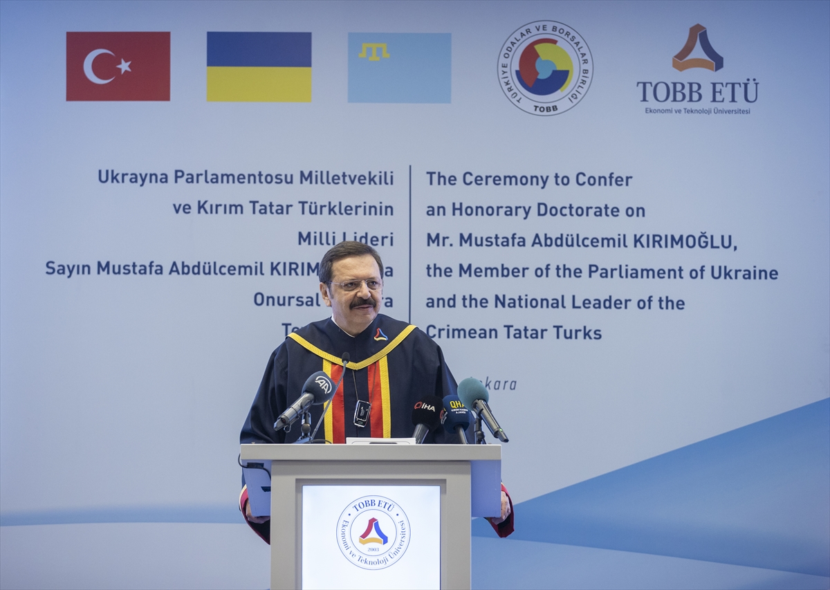 ANKARA (AA) – TOBB Ekonomi ve Teknoloji Üniversitesi (TOBB ETÜ), Kırım Tatar Türk halkının lideri ve Ukrayna Milletvekili Mustafa Abdülcemil Kırımoğlu'na siyaset bilimi ve uluslararası ilişkiler alanında fahri doktora verdi.