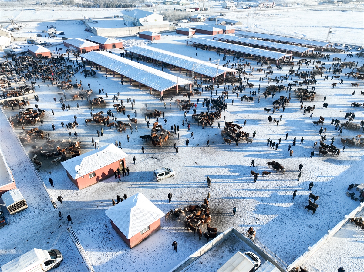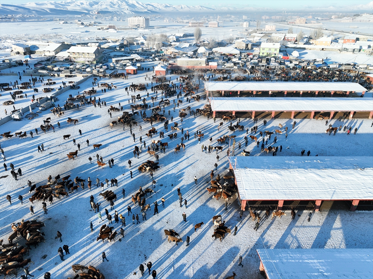 AĞRI (AA) – ABDULLAH SÖYLEMEZ – Doğu Anadolu Bölgesi'nin en büyük pazarlarından biri olan ve ülke ekonomisine katkı sağlayan Ağrı'daki hayvan borsasında, çetin kış koşullarında dahi hareketlilik sürüyor.