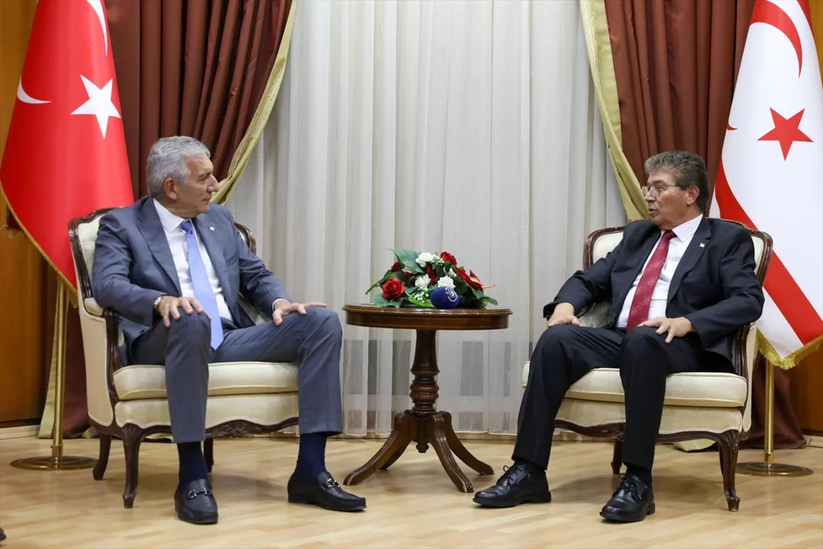 Başbakanlık Şeref Salonu'nda gerçekleşen görüşmede, Kıbrıs Türk Ticaret Odası Başkanı (KTTO) Turgay Deniz de hazır bulundu.
