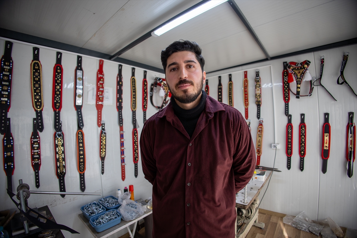 MALATYA (AA) – MUHAMMED BATU AK – Kahramanmaraş merkezli 6 Şubat 2023'teki depremlerde iş yeri yıkılan Mustafa Sürmeli, üretimini sürdürmek için konteynerde kurduğu atölyede el emeğiyle hazırladığı köpek tasmalarını 20'den fazla ülkeye ihraç ediyor.