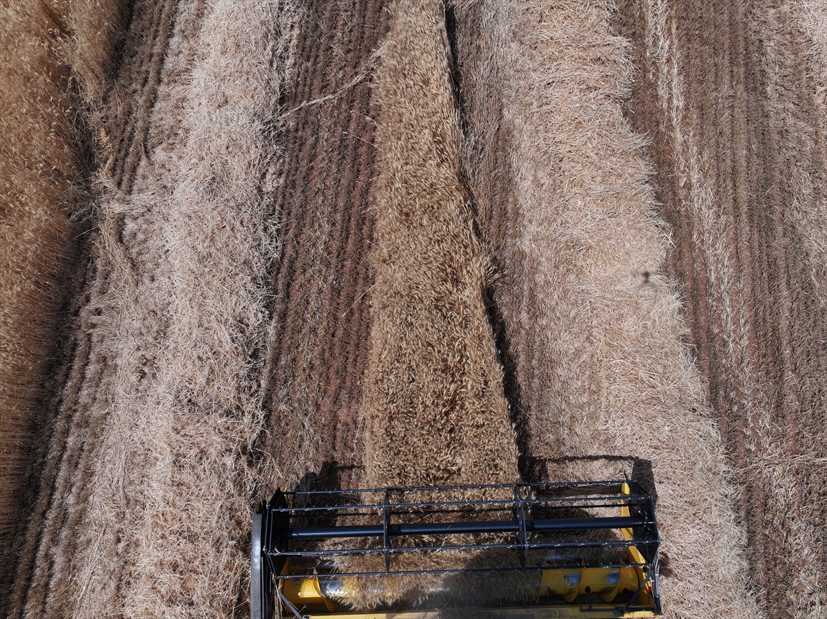 Tezcan, "Sulak alanlarda dekar başına 500 ila 900 kilogram ürün alınıyor ama kıraç yerler bu yıl çok zayıf kaldı. Bazı çiftçilerimizin tarlalarından 100 kilogram dahi çıkmadı. Bu şartlarda alınan her ürün için şükrediyoruz." diye konuştu.