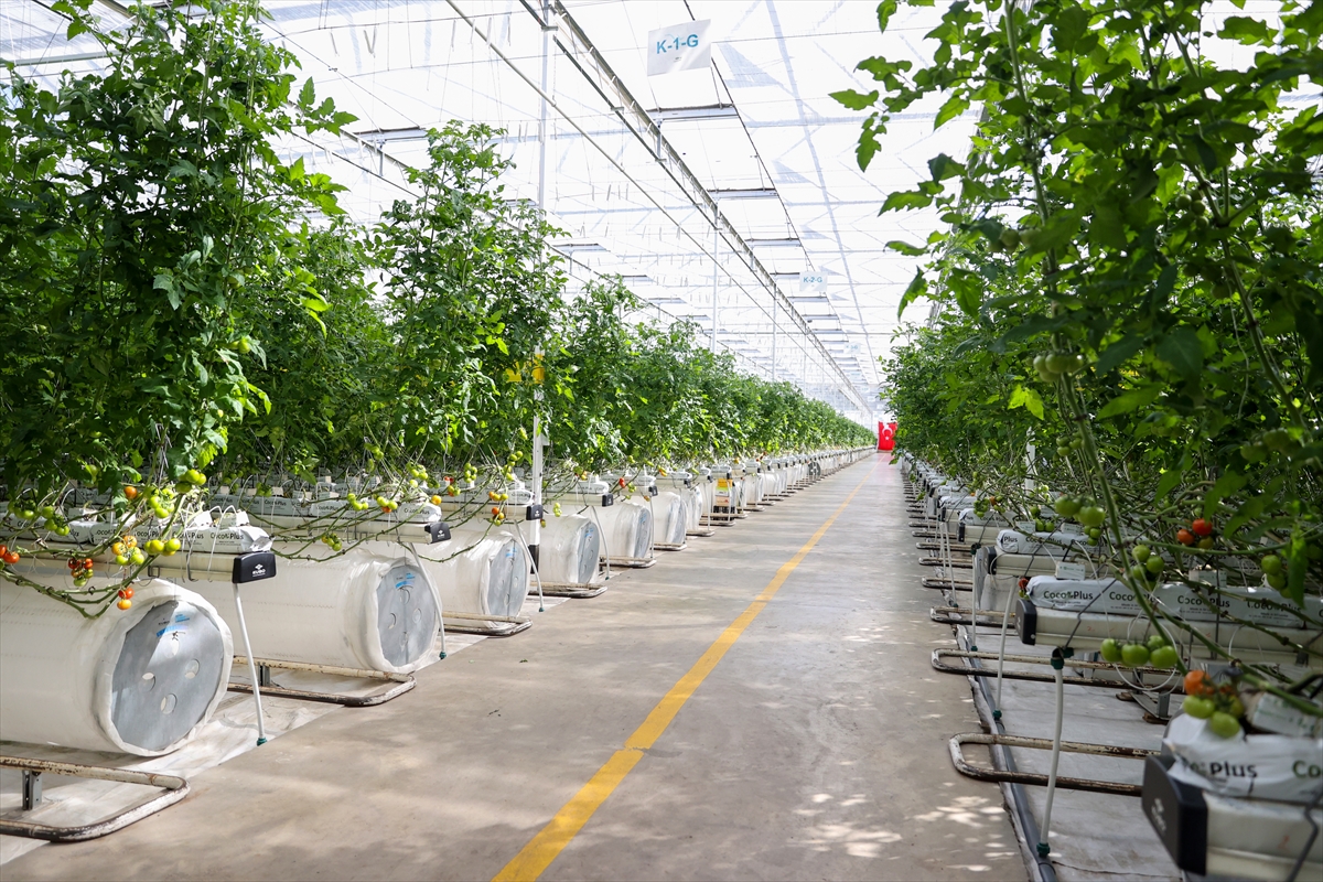 Erkoyuncu, üretim kampüsündeki 40 dönümlük, biyolojik mücadeleyle doğal üretim yapılan, ultra klima sistemli ve topraksız domates serasının, "sıfır atık prosesi"nin önemli bir safhasını oluşturduğunu dile getirdi.