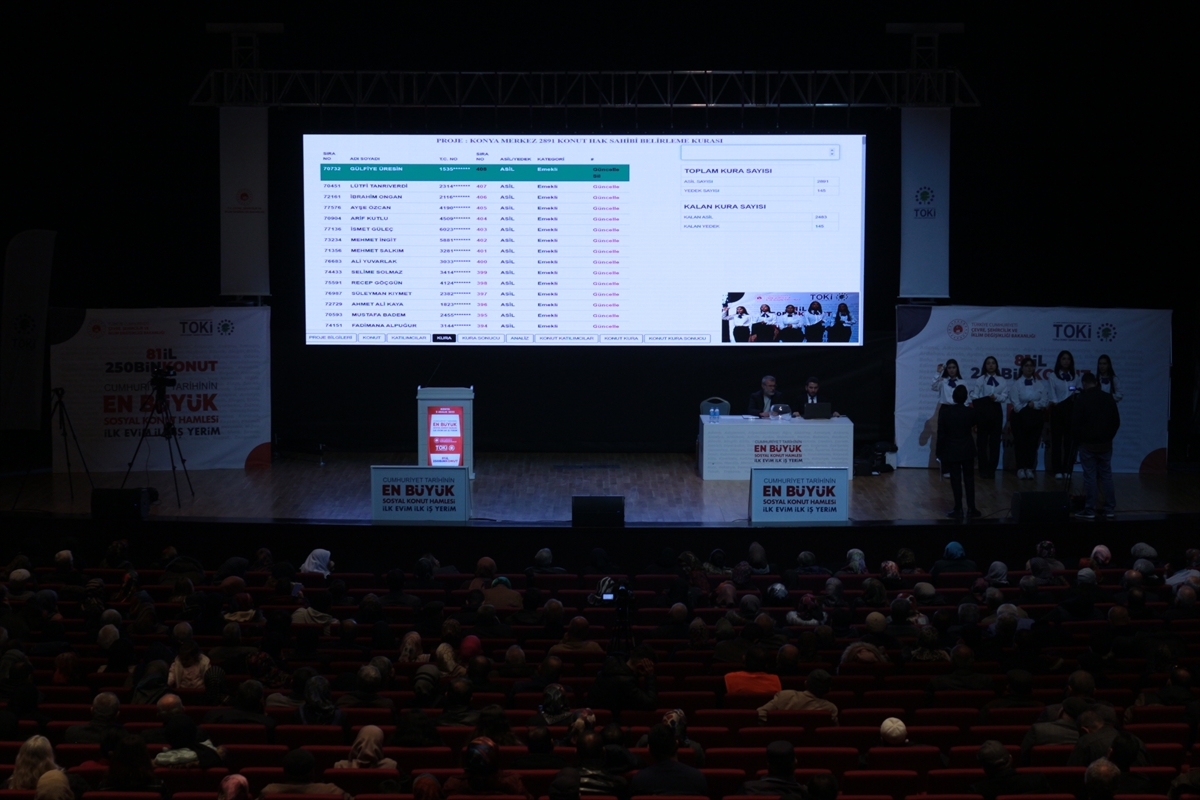 KONYA (AA) – Cumhuriyet tarihinin en büyük sosyal konut hamlesi olan "İlk Evim, İlk İş Yerim Projesi" kapsamında Konya'da yapılacak 2891 konutun hak sahiplerini belirlemek için kura çekildi.