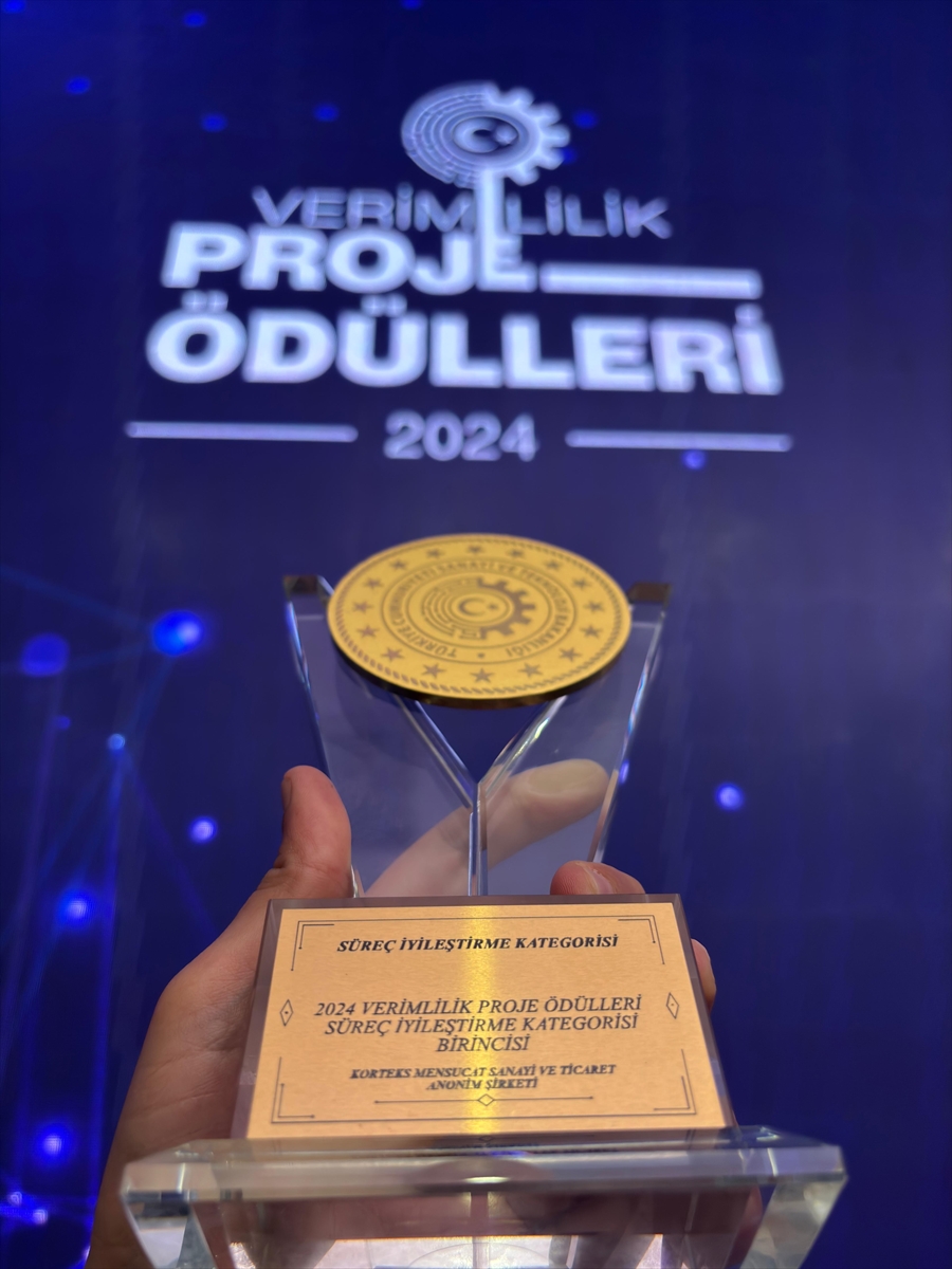 Şirketten yapılan açıklamaya göre, kurum ve kuruluşlar arasında verimlilik bilincini artırmak, iyi uygulamaları görünür kılmak ve yeni projeleri teşvik etmek amacıyla düzenlenen etkinlikte, "Lojistikte Mükemmellik: Depolama ve Sevkiyat Süreçlerinde Yenilikçi Çözümler" isimli projesiyle Korteks 2024 yılı "Süreç İyileştirme" kategorisinin birincisi oldu.