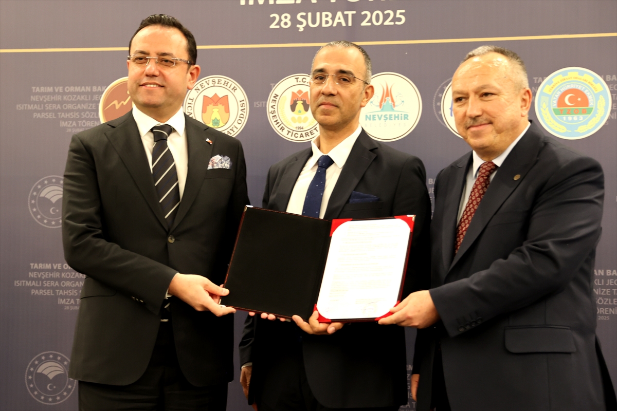 NEVŞEHİR (AA) – Kozaklı Jeotermal Isıtmalı Sera Organize Tarım Bölgesi (OTB) Parsel Tahsis Sözleşmeleri İmza Töreni gerçekleştirildi.