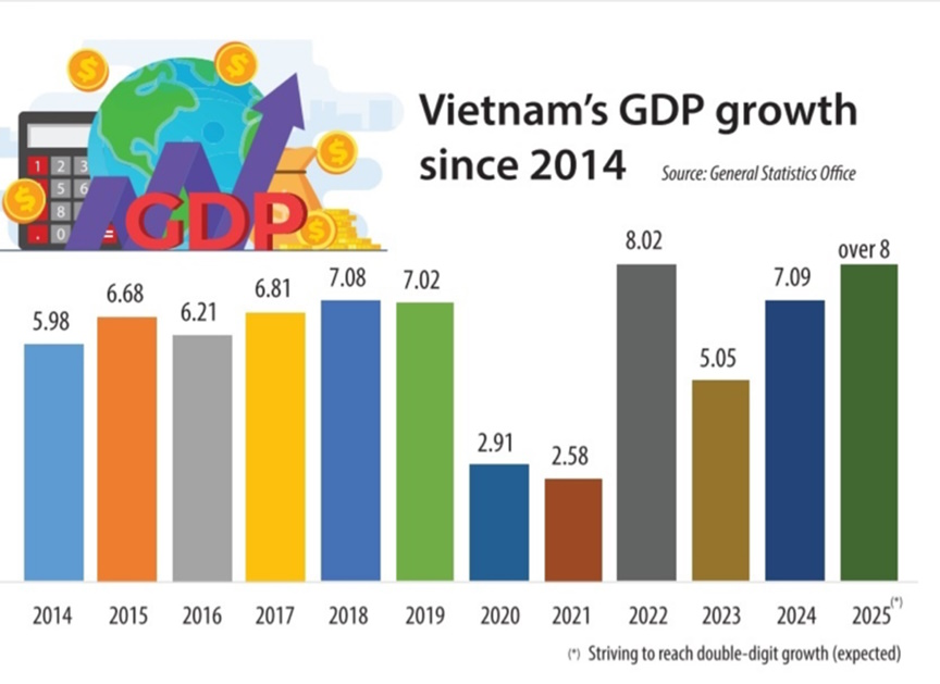 -2024 yılında Vietnam ekonomisi %7,09 oranında büyüdü, Vietnam’ın yıllık ihracatı %15,4 artışla 405,5 milyar dolara ulaştı. Vietnam ekonomisinin son yıllarda gösterdiği yüksek performans, dikkat çekici ve etkileyicidir. Vietnam’ın 2029 yılında ulaşması beklenen 679 milyar dolarlık GDP büyüklüğü ile Singapur’u geçmesi; 2039 yılına kadar %5,5’in üzerinde büyüme performansı beklentisi ile de dünyanın en büyük 25’inci ekonomisi olması bekleniyor.