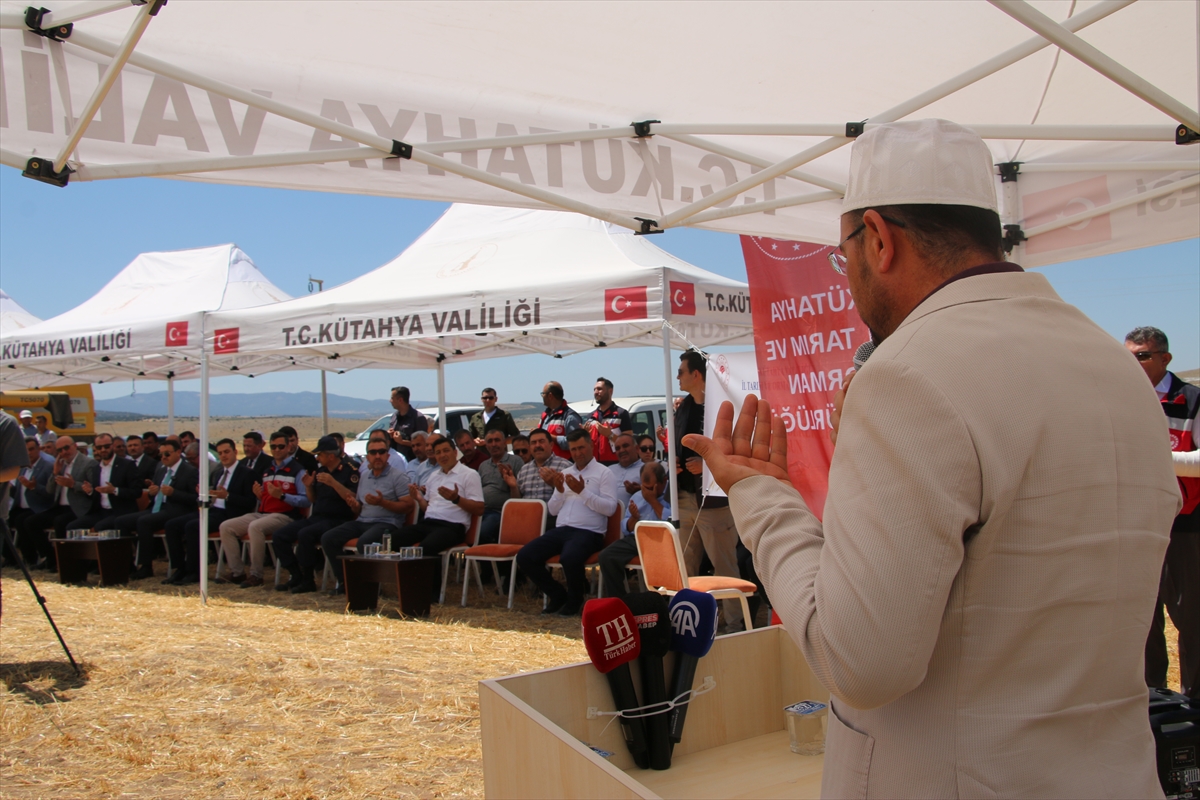 Kütahya Müftü Vekili Bahtiyar Kargıoğlu tarafından hasat duası yapılmasının ardından biçerdöverlerle hasada başlandı.