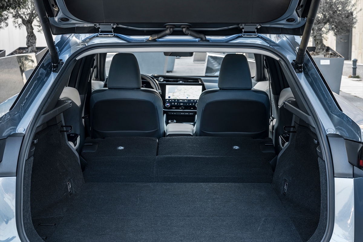 RZ'nin tam elektrikli karakteri, arka tasarımda da yüksek teknolojiye sahip görünümle desteklendi. Bölünmüş arka spoyler aracın geniş duruşuna gönderme yaparken, RZ'nin dengeli performansına da katkı sağladı. Aracın genişliği boyunca uzanan şerit ışıklandırma da, yeni Lexus tasarımının ayırt edici bir özelliği olarak öne çıktı.