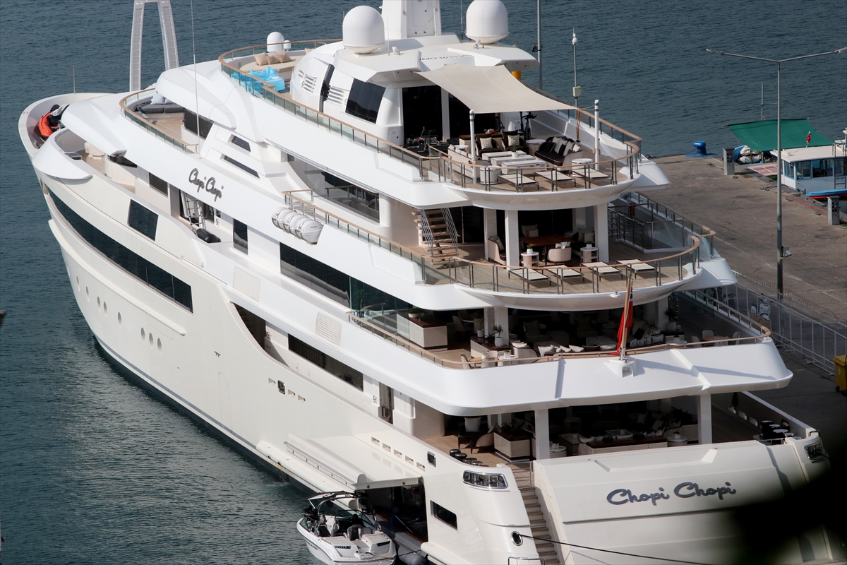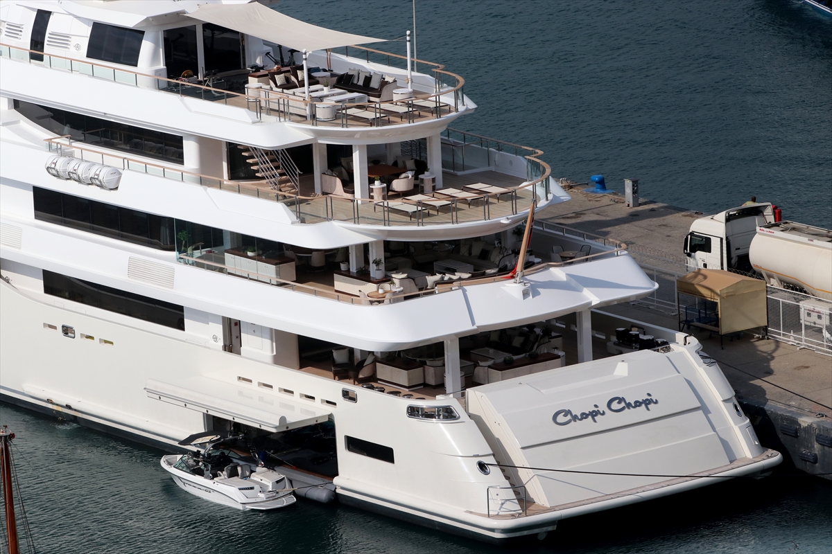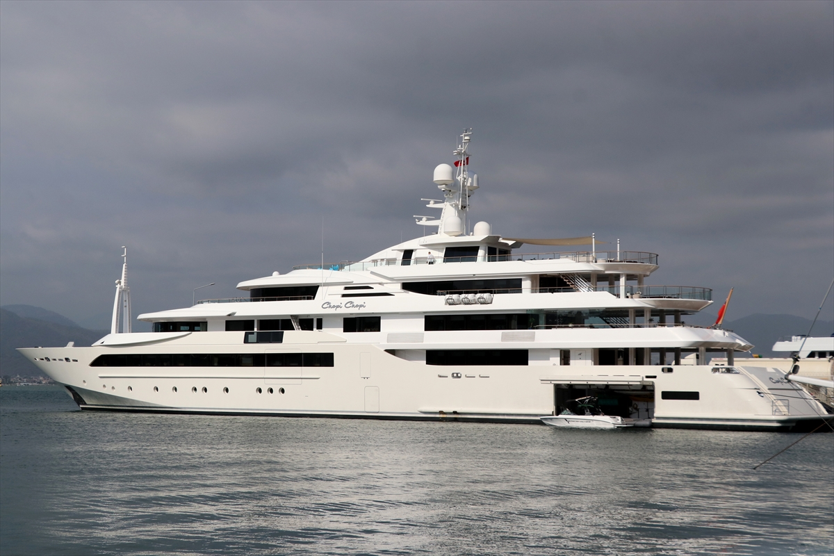 MUĞLA (AA) – Lübnanlı iş insanı Taha Mikati'nin ultra lüks yatı "Chopi Chopi", Muğla'nın Fethiye ilçesine geldi.