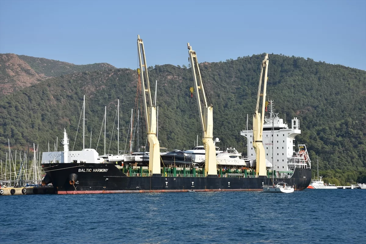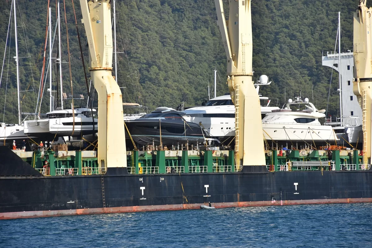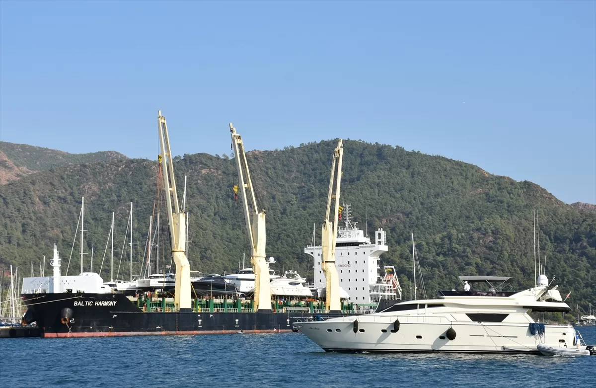 MUĞLA (AA) – Muğla'nın Marmaris ilçesine bakım ve onarımdan geçirilmeleri için 2 kargo gemisiyle 4 lüks motor yat getirildi.