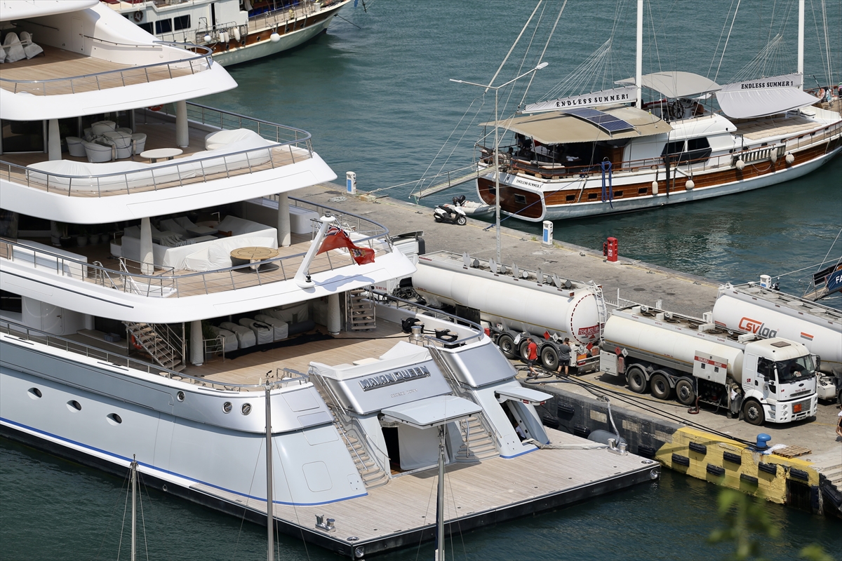Cayman Adaları bayraklı 93 metrelik yat, Fethiye Limanı'na yanaştı. Aliağa Rafinerisi'nden tankerle getirilen akaryakıt, yata ikmal edilmeye başlandı.