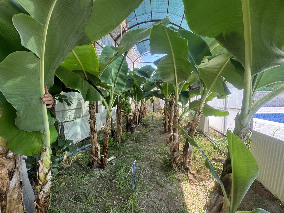 Kadıçayırı Mahallesi'nde fidan üreten Nurettin Çarpıcı ve ortağı Aziz Haliloğlu'nun kurduğu serada muzlar meyve verdi.