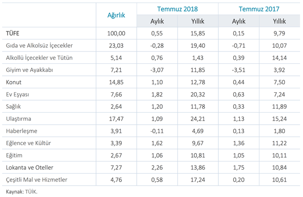 Tablo: Temmuz Ayı Enflasyonu Bileşenleri