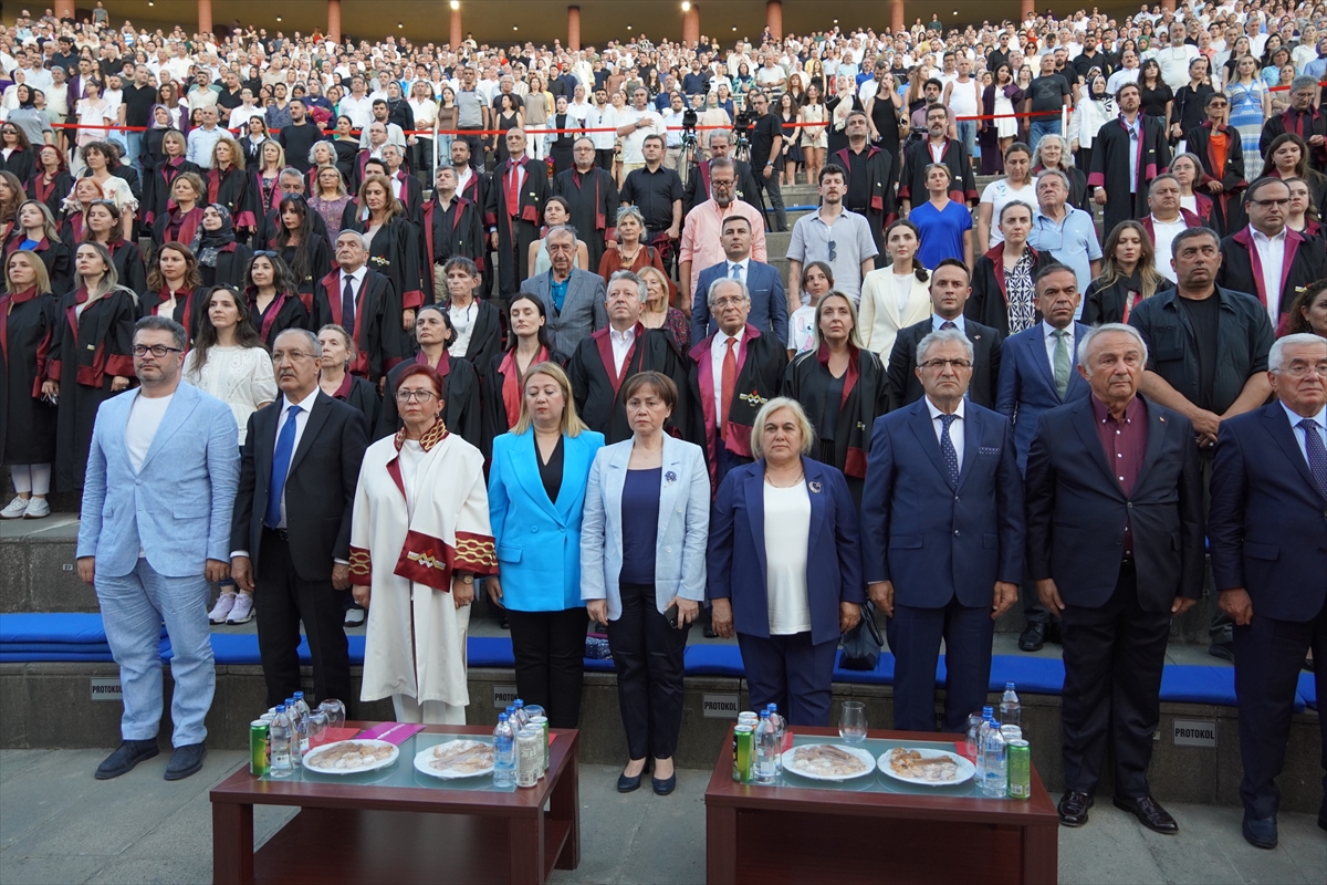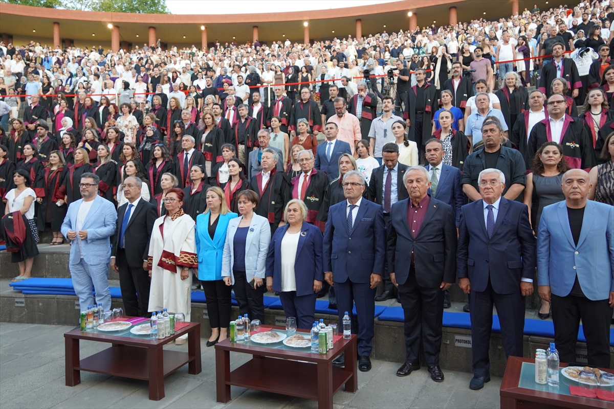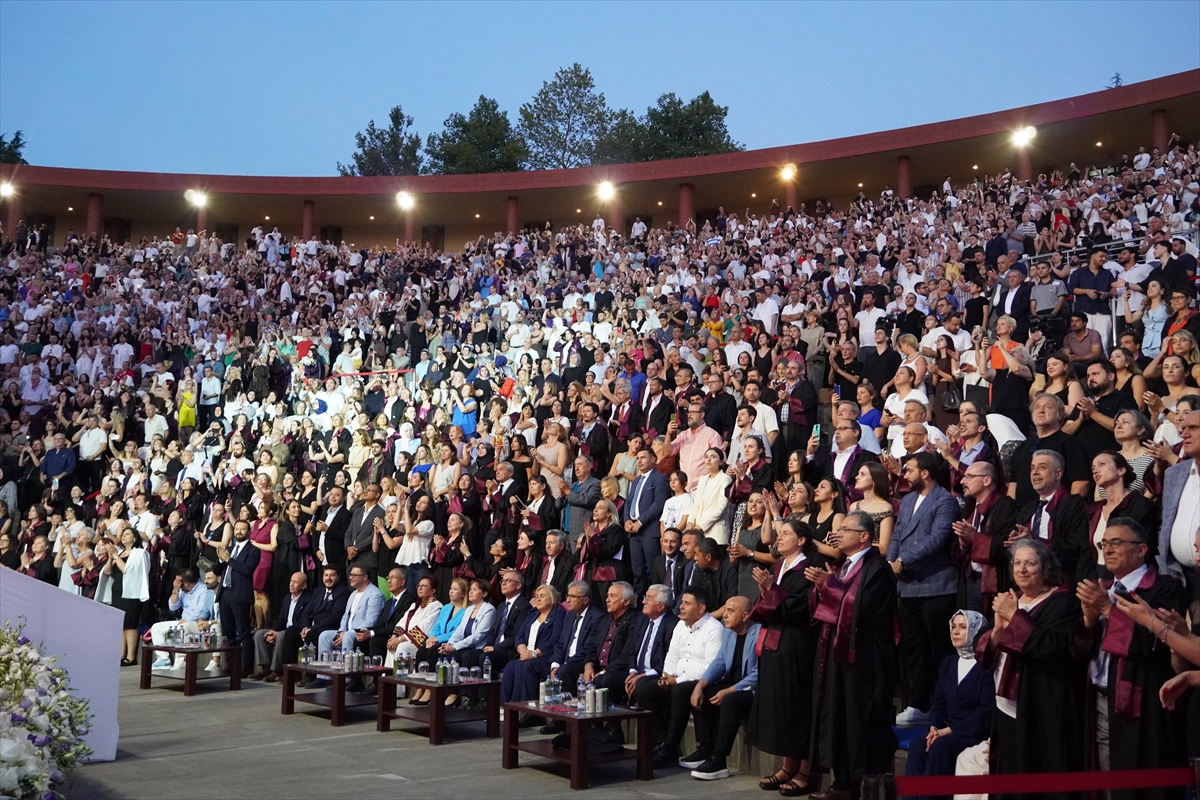 "Bugün 10 bin kişilik bir açık hava tiyatrosunda törenimizi gerçekleştiriyoruz. Aileler, kardeşler, şehir dışından gelen misafirlerle birlikte çok özel bir anı paylaşıyoruz. Öğrencilerimizin hayallerine ulaşmalarını, gelecek planlarını gerçekleştirmelerini diliyorum. Bu gençler bizim hepimizin ve onlar Türkiye'nin önemli yerlerinde görev alacaklar."