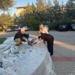 Taşıma sırasında dalları kesilen ağaç, uzun bakım süreci sonrası tekrar filizlendi. Cengiz, zeytin ağacından ilk meyveleri, dükkanına gelen yabancı turistlerle birlikte topladı.