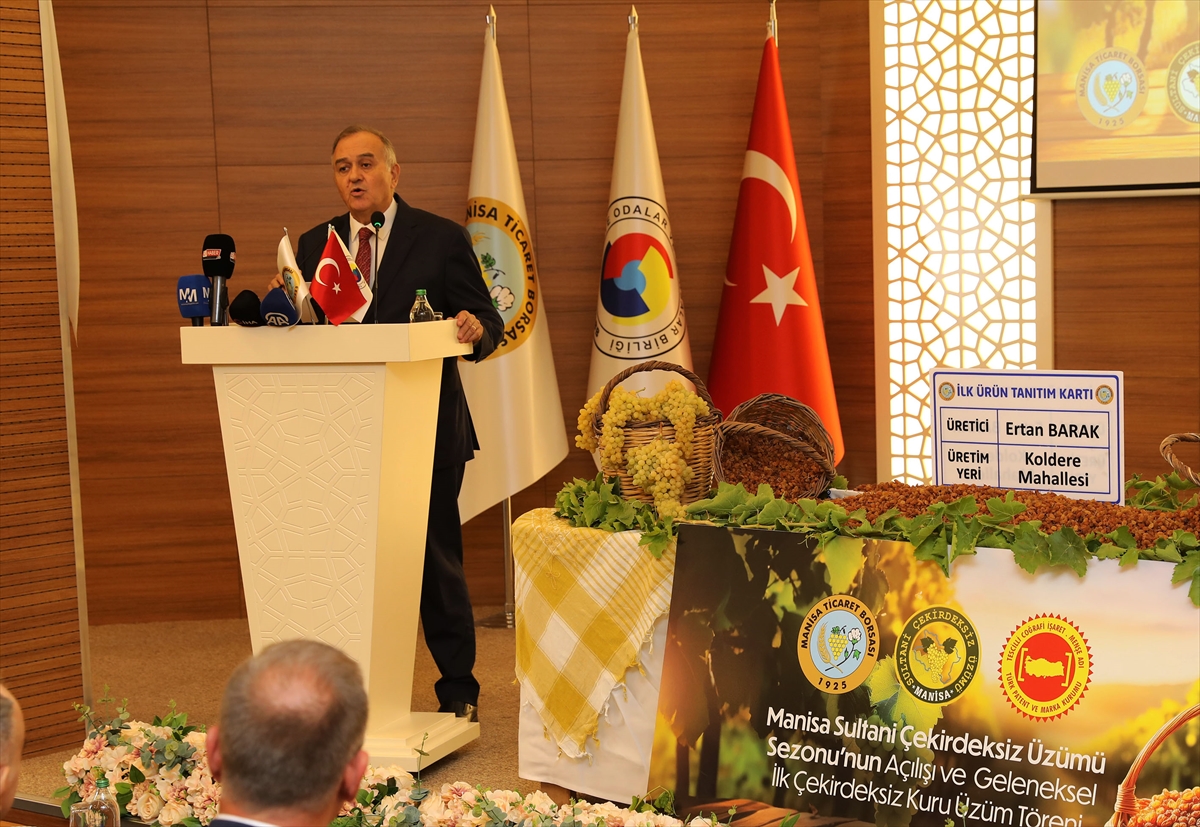 Sezonun ilk çekirdeksiz kuru üzüm alım işleminin başlaması dolayısıyla Manisa Ticaret Borsası'nda tören düzenlendi.