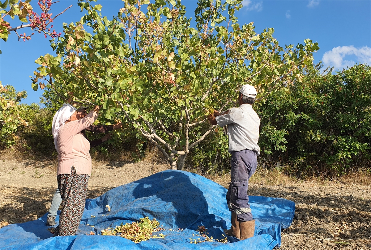 Demirci Ziraat Odası öncülüğünde yaklaşık 4 bin 500 dekarlık alandaki menengiç (çitlembik) ağaçlarının aşılanmasıyla elde edilen Antep fıstığında hasat sezonu başladı.