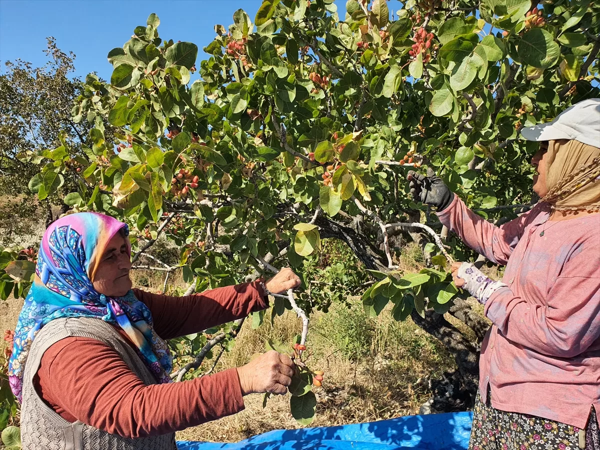 Demirci Ziraat Odası öncülüğünde yaklaşık 4 bin 500 dekarlık alandaki menengiç (çitlembik) ağaçlarının aşılanmasıyla elde edilen Antep fıstığında hasat sezonu sürüyor.