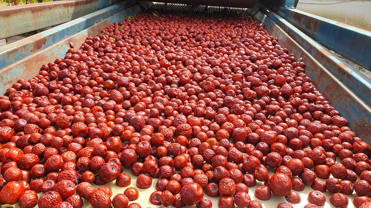 Örtülerin üzerinde toplanan hünnapların elek makinesinde boylaması yapılıyor. Yapraklarından ayrılan meyveler kurutulmak üzere seriliyor. Hünnaplar 4 gün kuruduktan sonra çuvallara konularak satışa sunuluyor.
