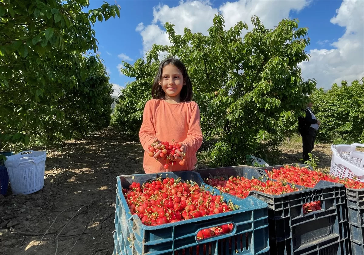 Bahçesindeki "Cristobalina" cinsi kirazları hasat eden üretici Yavuz Tun, 120 kilogram ürünü alım merkezine getirdi.