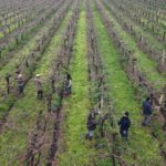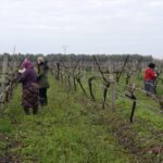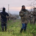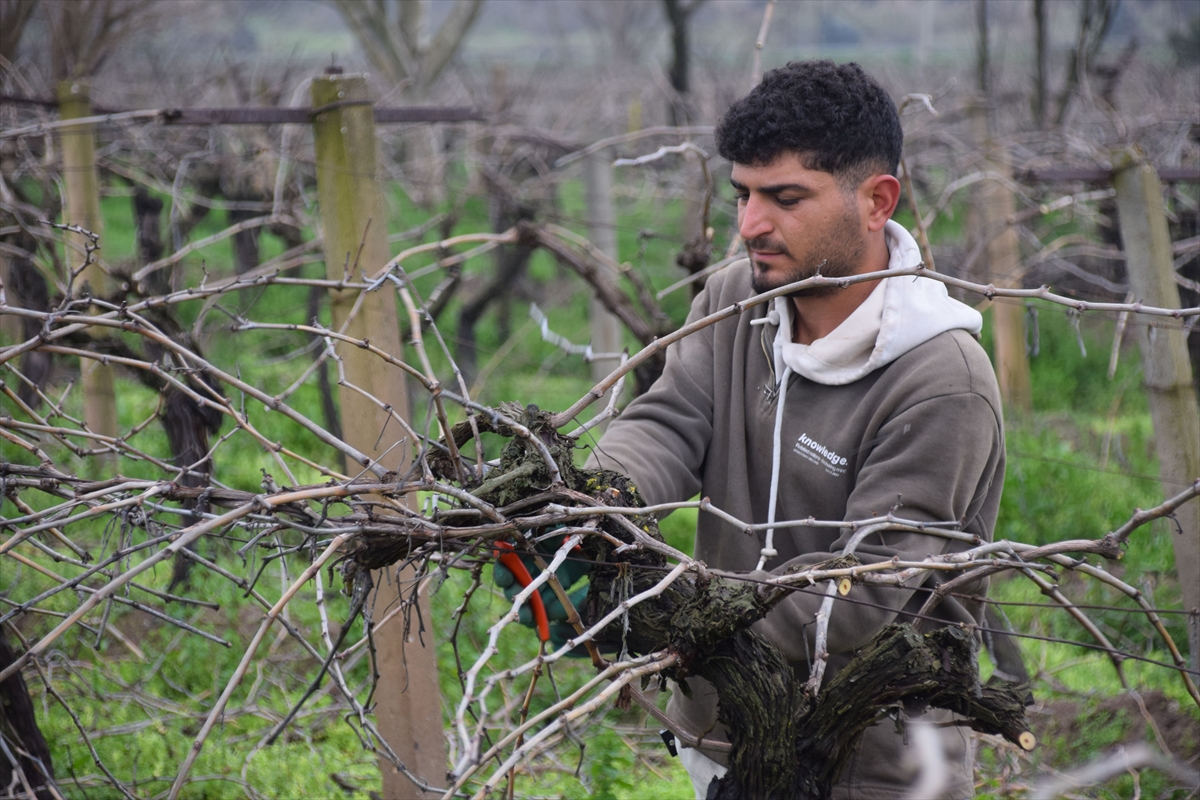İşçiler, gelecek sezonun verimini belirleyecek, üzerinde daha fazla meyve gözü bulunan sağlıklı ve taze asma çubuklarını bırakıyor, eski, zayıf ve az gözlü dalları keserek temizliyor.