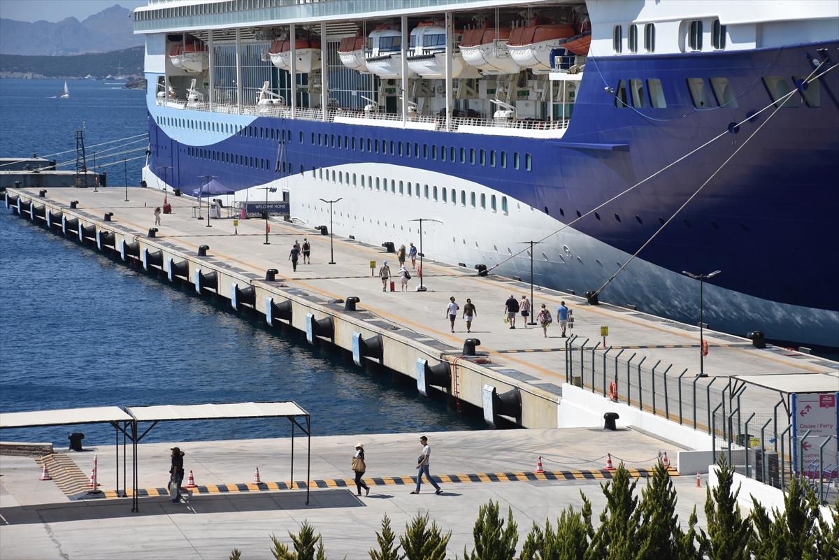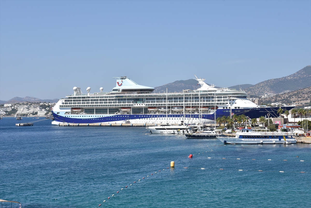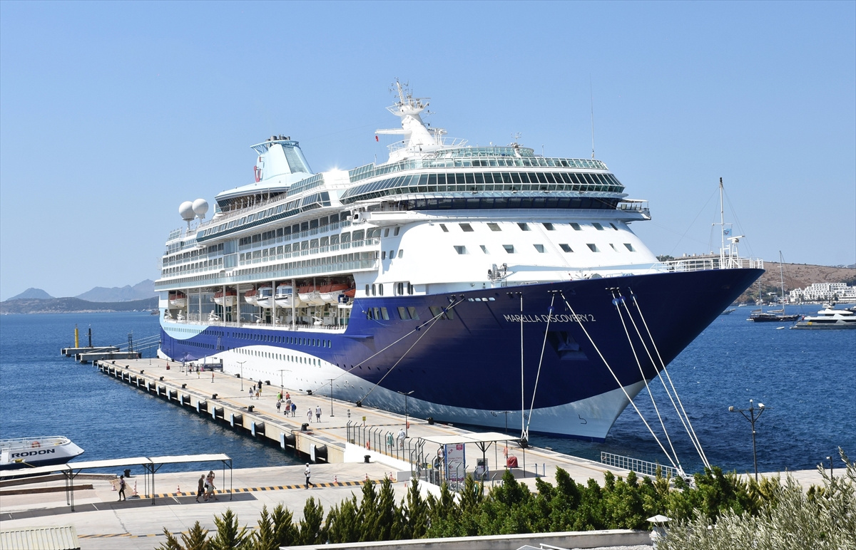 Santorini Limanı'ndan yola çıkarak Bodrum'a ulaşan gemide çoğu İngiliz 1809 yolcu ile 733 personel bulunuyor.