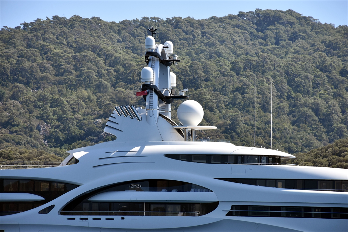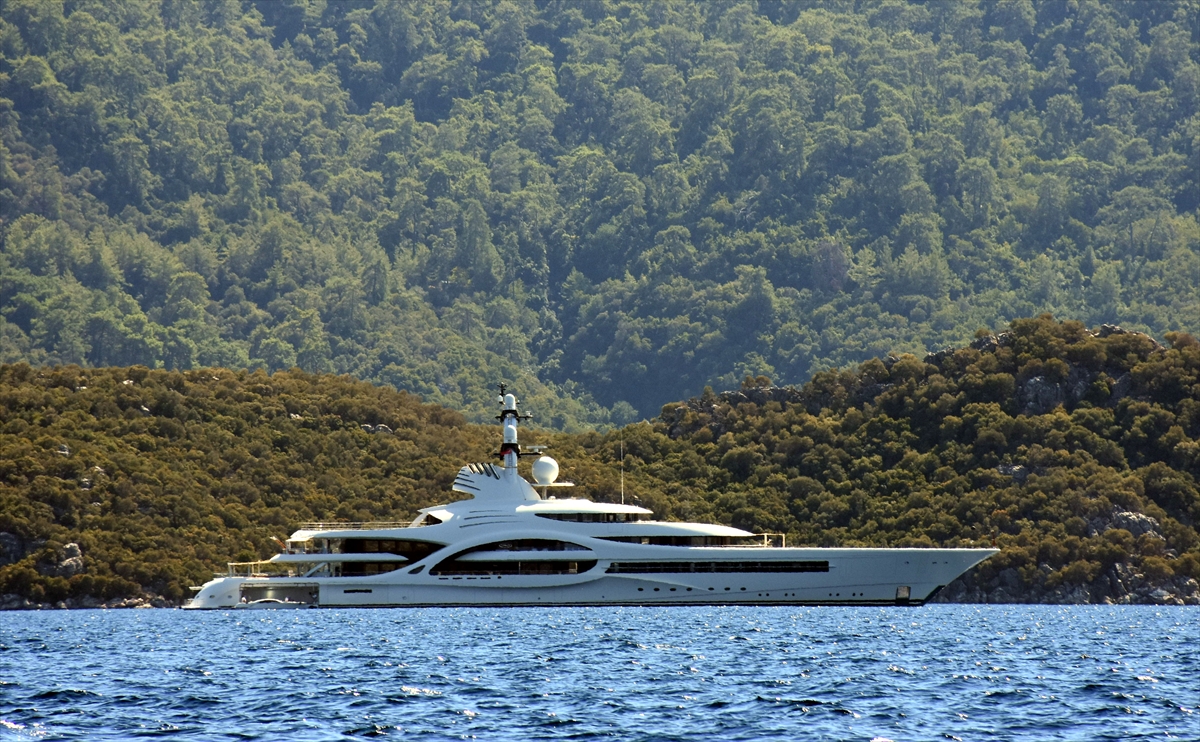 Yaz sezonun son aylarının yaşandığı ilçeye, Cayman Adaları bayraklı 110 metre uzunluğunda, 18 metre genişliğindeki "Anna" isimli dev yat geldi.
