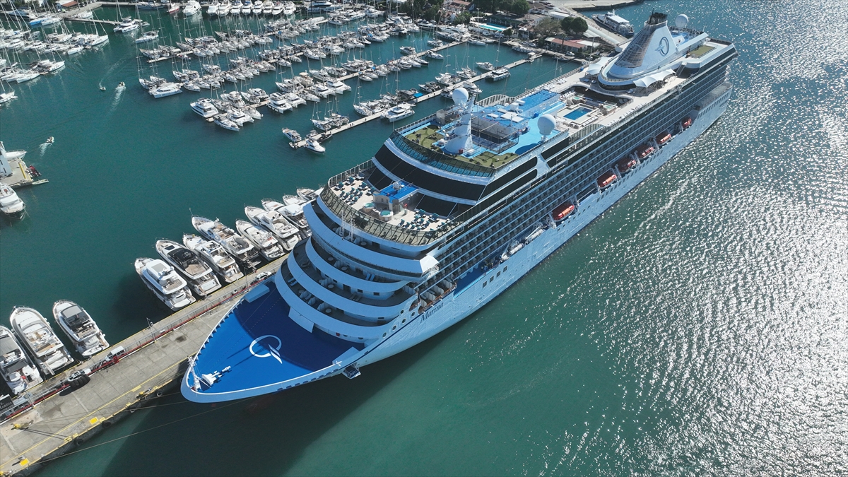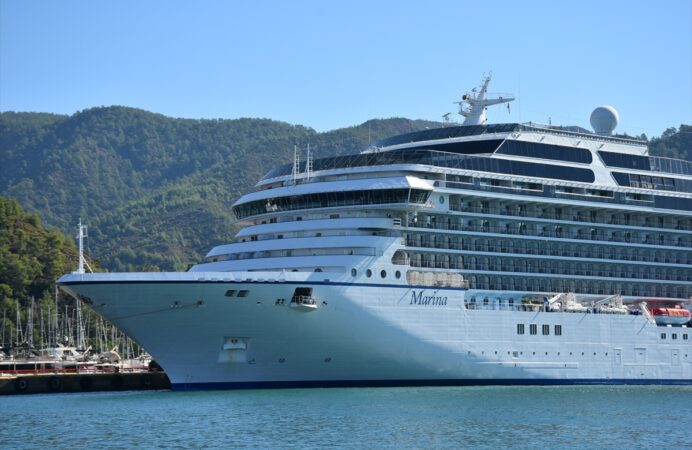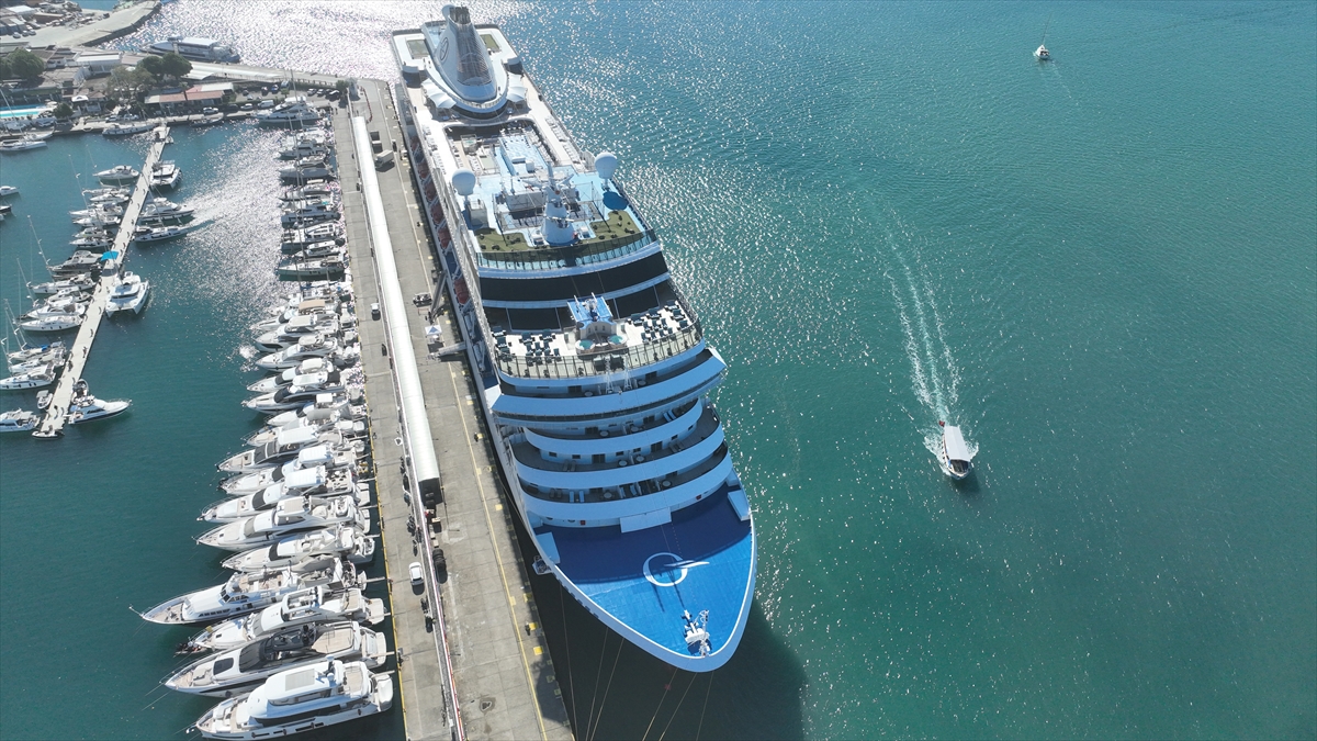 Girit Adası'ndan Marmaris'e gelen 240 metrelik lüks yolcu gemisi, Marmaris Cruise Port Limanı'nın büyük iskelesine yanaştırıldı.