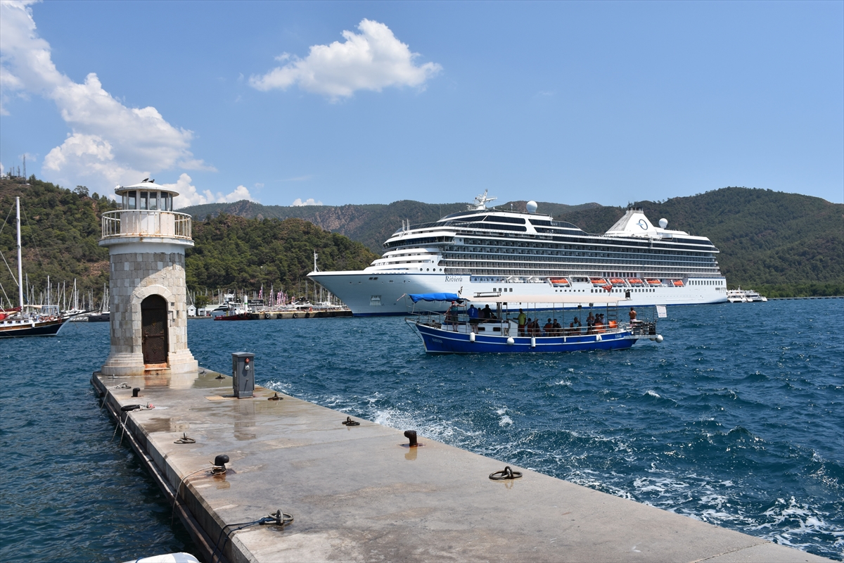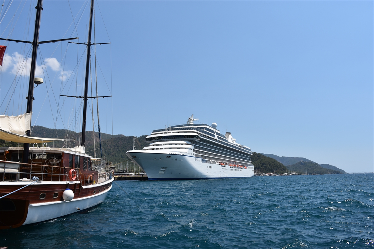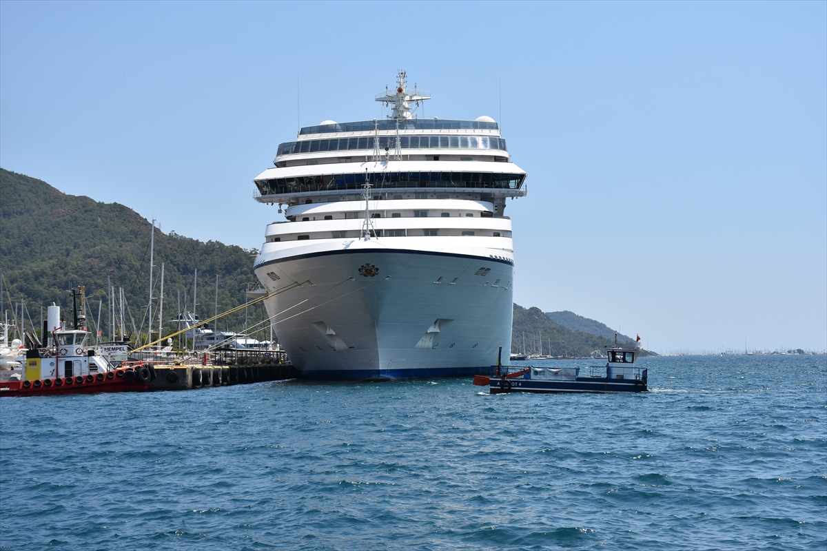 Marmaris Cruise Port büyük iskelesine yanaşan gemide çoğunluğu ABD ve İngiliz 973 yolcu ile 750 kişilik personel bulunuyor.