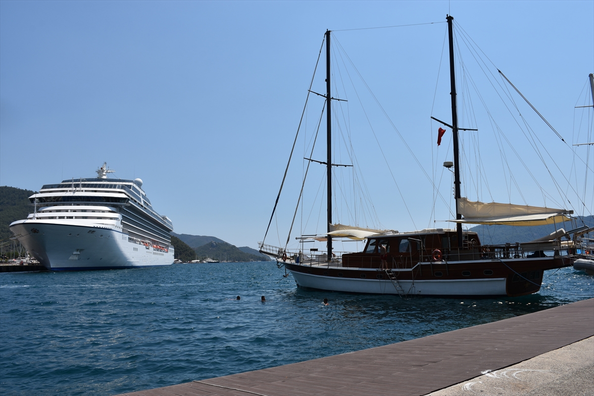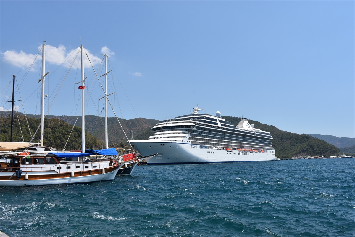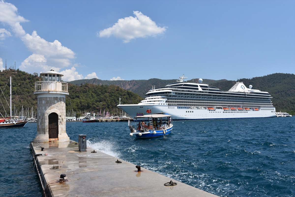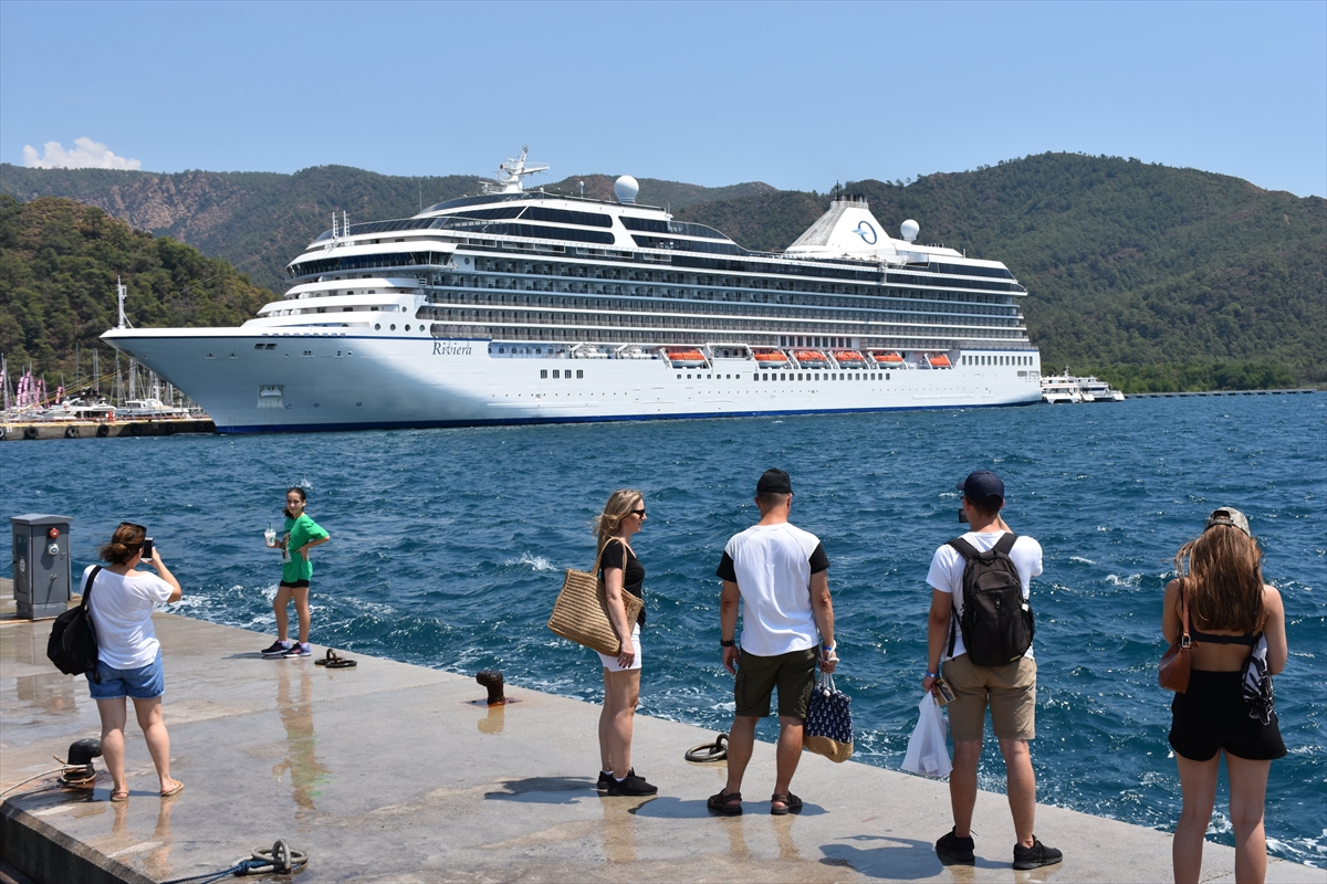 Marmaris Cruise Port büyük iskelesine yanaşan gemide çoğunluğu ABD ve İngiliz 973 yolcu ile 750 kişilik personel bulunuyor.