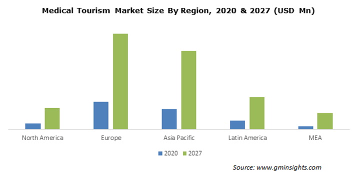 2020-2027 yılları arasında medikal turizm pazar büyüme tahmini raporuna göre Türkiye’nin de içinde bulunduğu Avrupa kıtası %11,7’den fazla bir büyüme oranına ulaşacağı ön görülüyor.