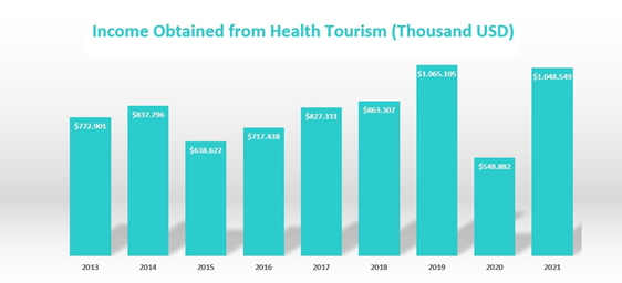 Ushaş verilerine göre, 2019 yılında sağlık turizmi ve turist sağlığı kapsamında 662.087 hasta sağlık hizmeti almış. Bu hizmet 1.065.105.000 ABD Doları gelir yaratmıştır. Türkiye İstatistik Kurumu’nun (TÜİK) verilerine göre, 2021 yılının son 10 aylık döneminde tedavi amacıyla Türkiye’yi tercih eden turist sayısı 370 bin 335 oldu. Elde edilen gelir 704 milyon 261 bin doları buldu.