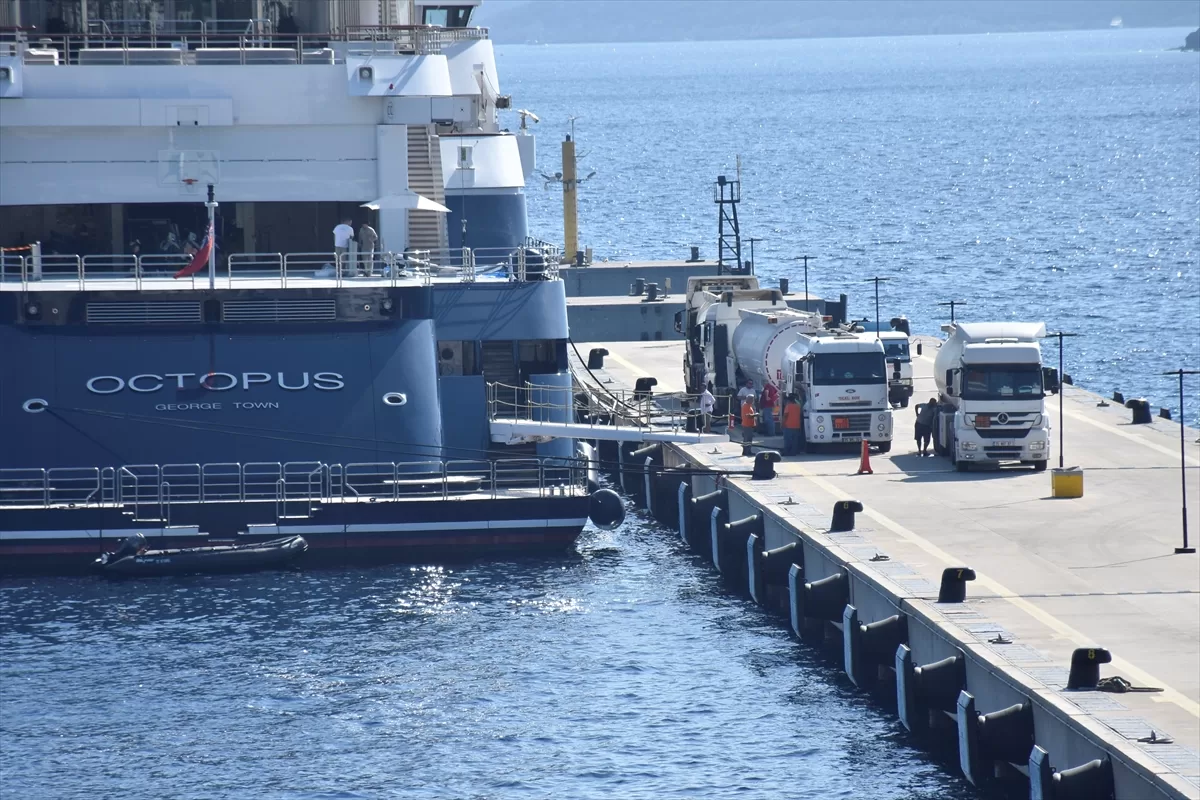MUĞLA (AA) – Muğla'nın Bodrum ilçesinde demirli "Octopus" adlı mega motoryata yakıt ikmali yapıldı.