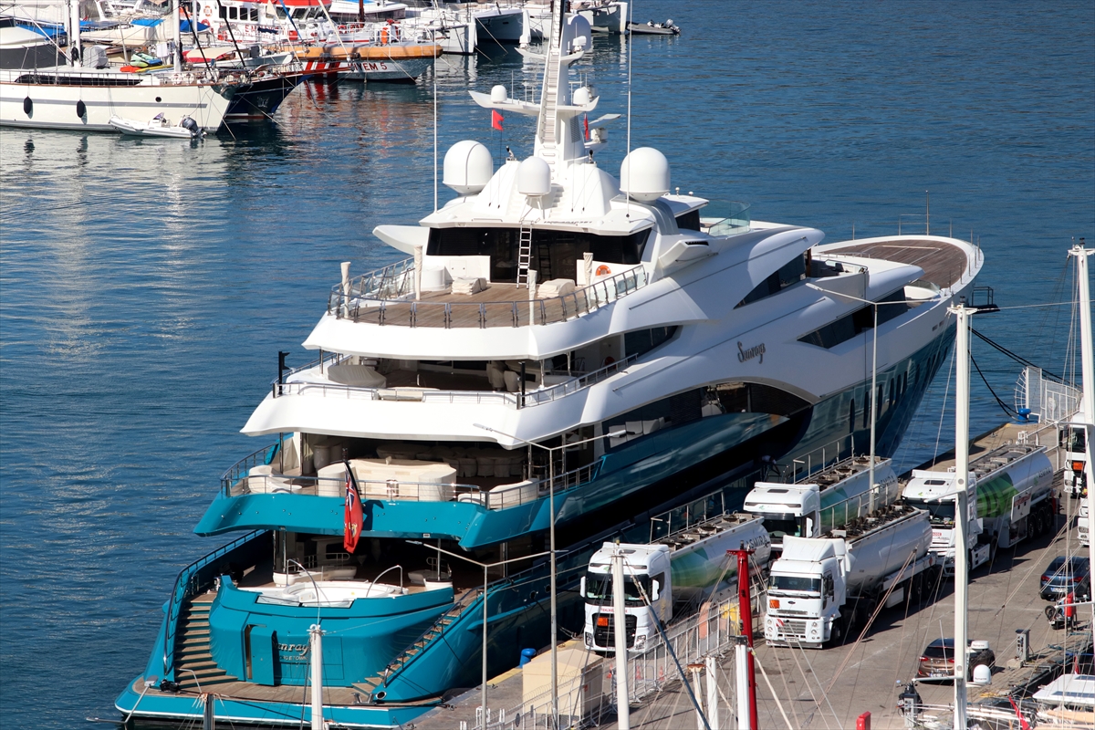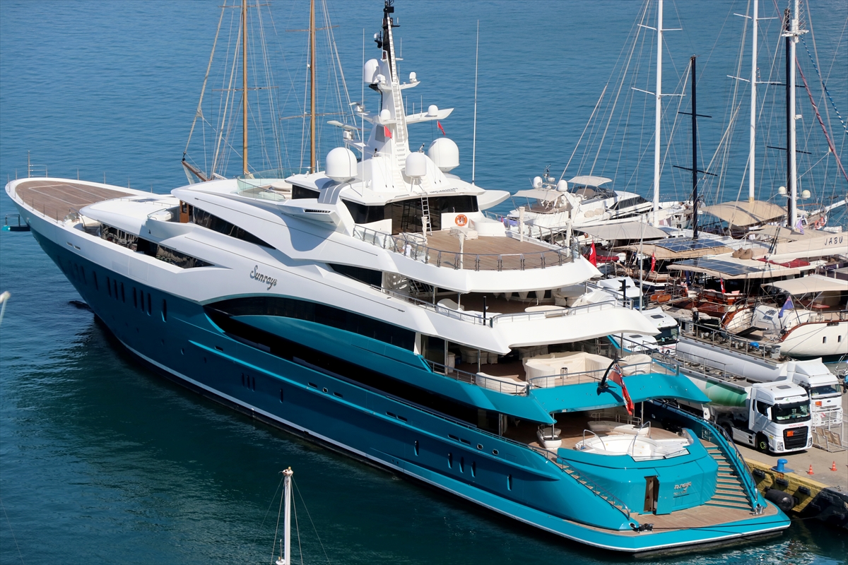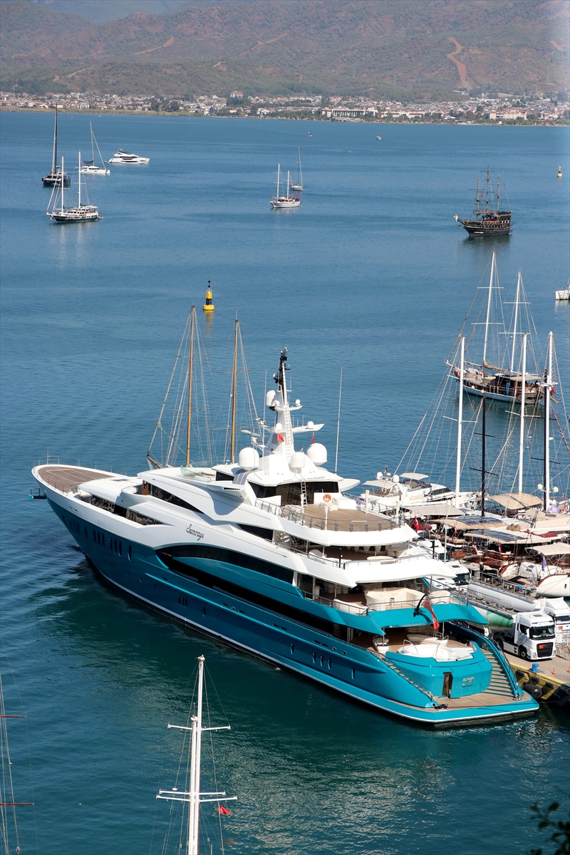 MUĞLA (AA) – Dünyanın en büyük yatları arasında gösterilen " Sunrays", yakıt ikmali için Muğla'nın Fethiye ilçesine geldi.