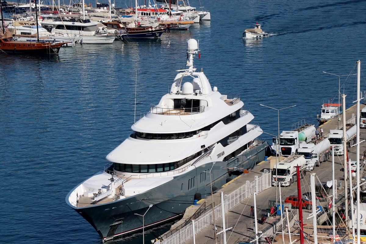 MUĞLA (AA) – Dünyanın en büyük yatları arasında gösterilen "Titan", yakıt ikmali için Muğla'nın Fethiye ilçesine geldi.