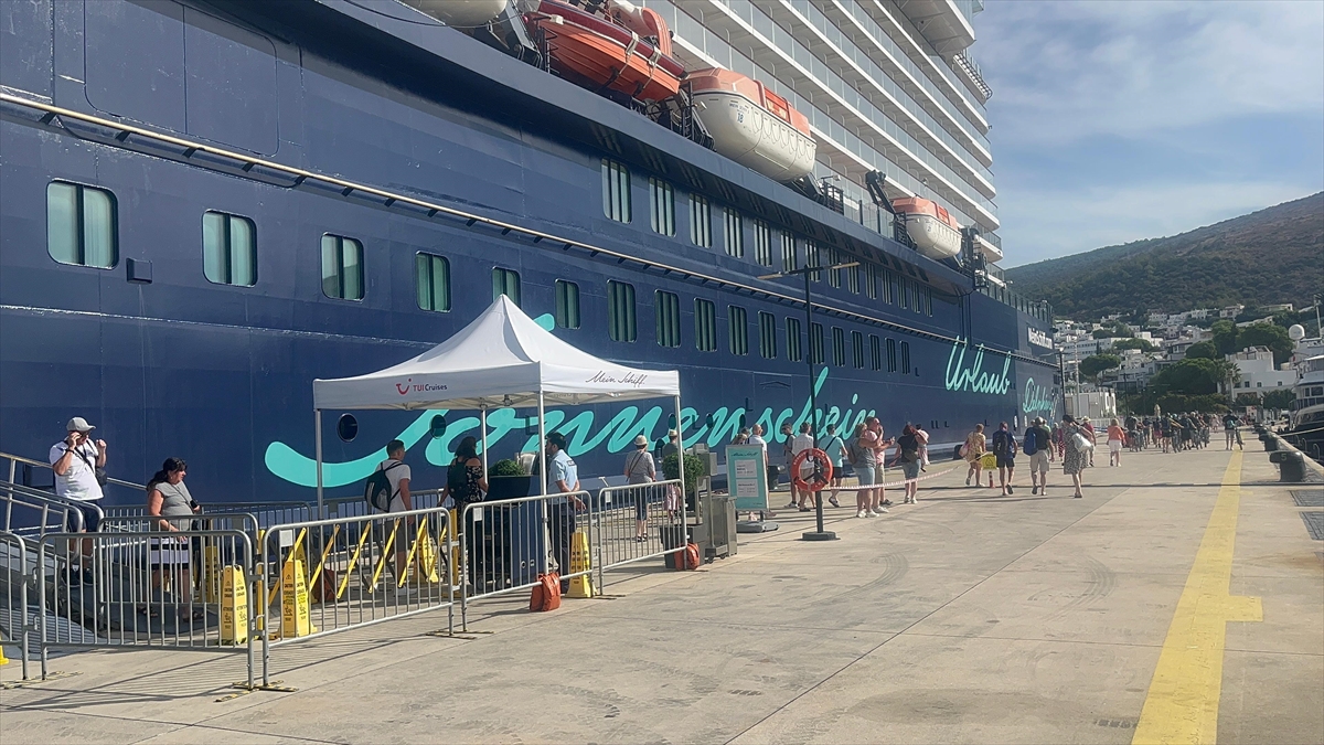 Kuşadası Limanı'nın ardından rotasını Bodrum'a çeviren 295 metrelik kruvaziyer, Bodrum Limanı'na yanaştırıldı. Gemide, çoğu Alman 2 bin 491 yolcu ve 916 personelin bulunduğu belirtildi.