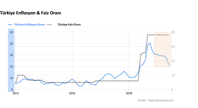 Türkiye’de enflasyon oranı son dönemde düşüş trendine girmiş durumda. Haziran ayı yıllık enflasyon verisinin %15.71’e düşmesiyle beraber halihazırda %24 olan politika faizi ile arasındaki fark açılmaya başladı. Bu durum da faizlerin düşüşe geçmesi hususunda söylentilerin ve beklentilerin artmasına sebep oldu.