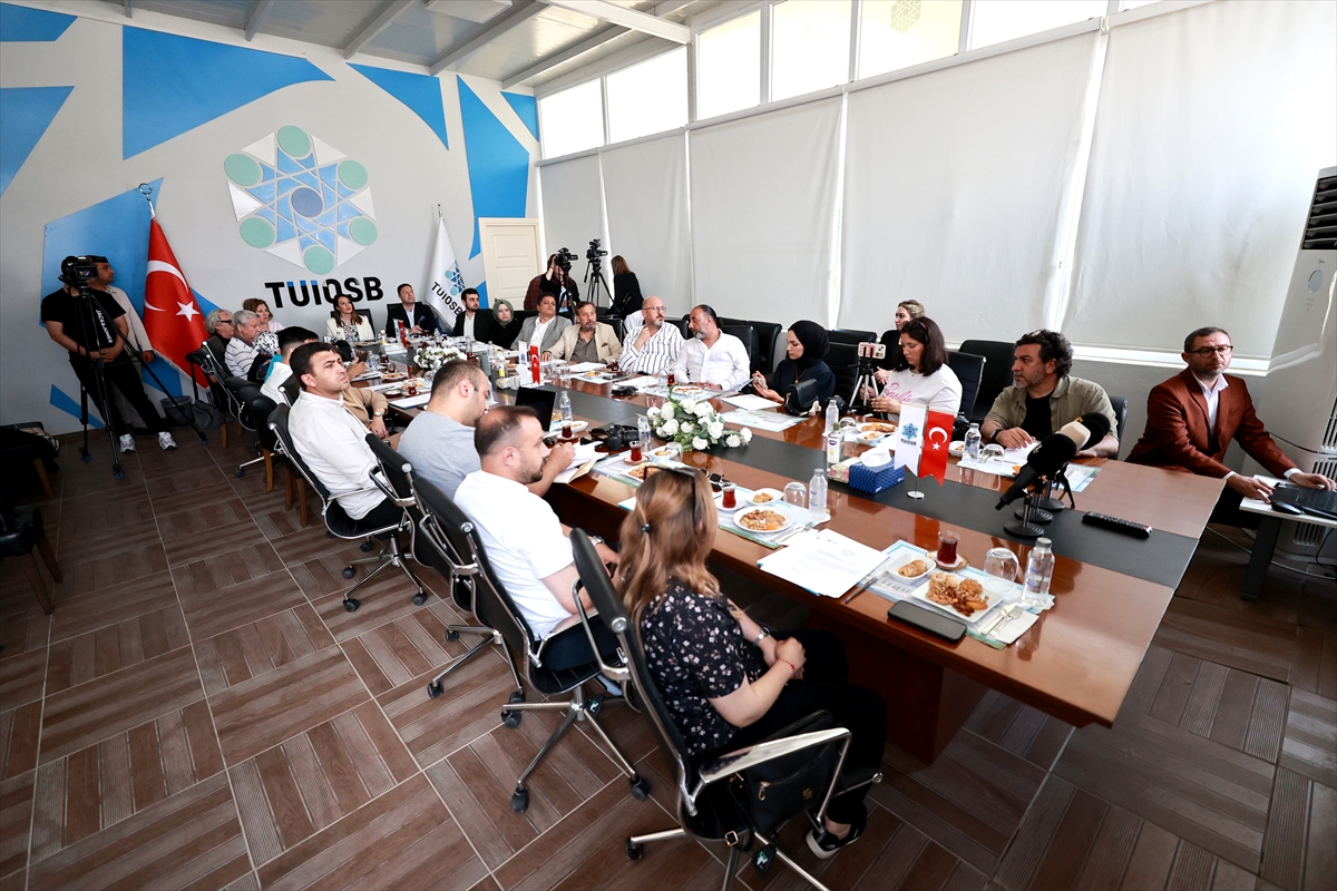 TÜİOSB Yönetim Kurulu üyeleri, Tarsus ilçesindeki şantiye ofisinde basın mensuplarıyla bir araya geldi.