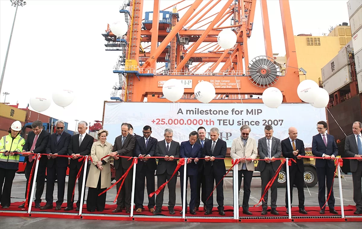 MIP'ten yapılan açıklama göre, limanda 25 milyonuncu TEU konteyner elleçlemesinin gerçekleşmesi dolayısıyla tören düzenlendi.