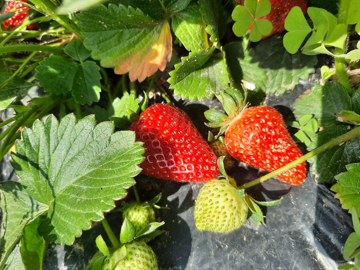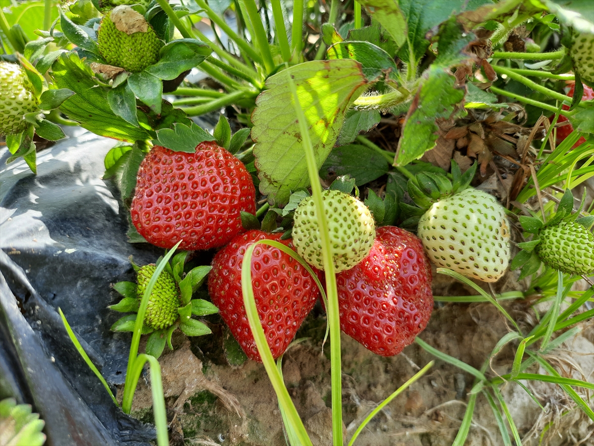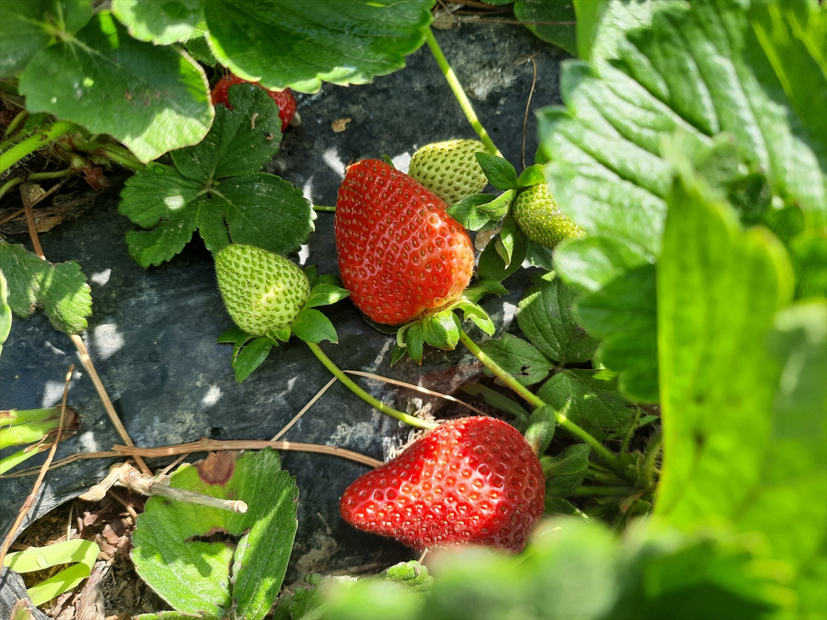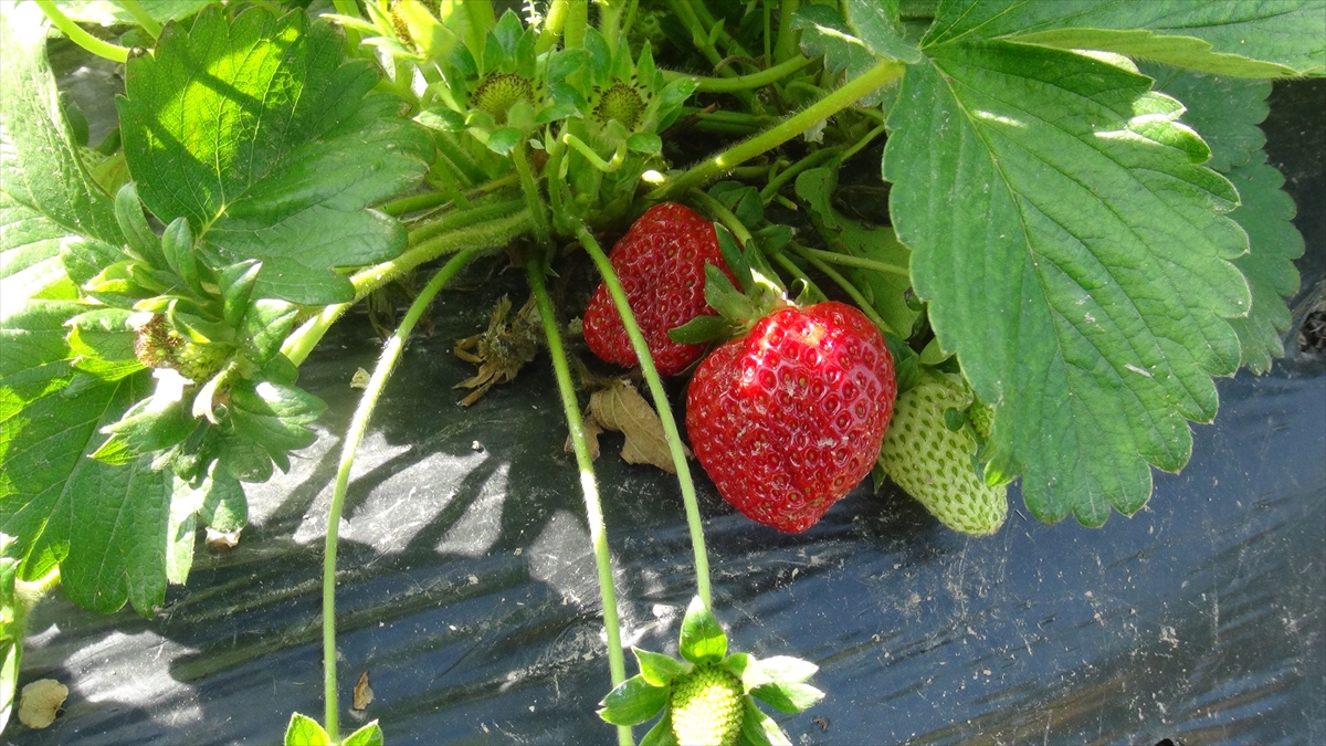 Yaş meyve ve sebze üretimiyle öne çıkan ilçede, havaların ısınmasıyla olgunlaşan çileklerin hasadı sürüyor.