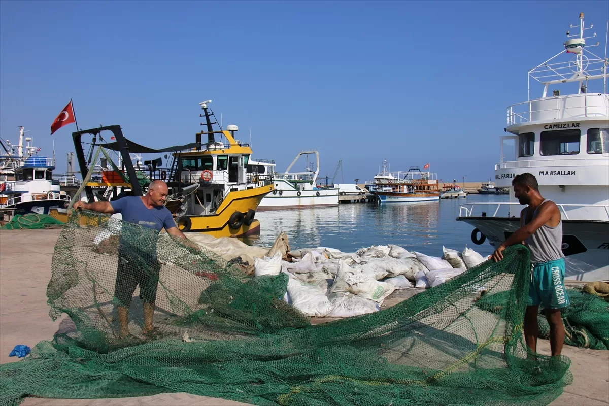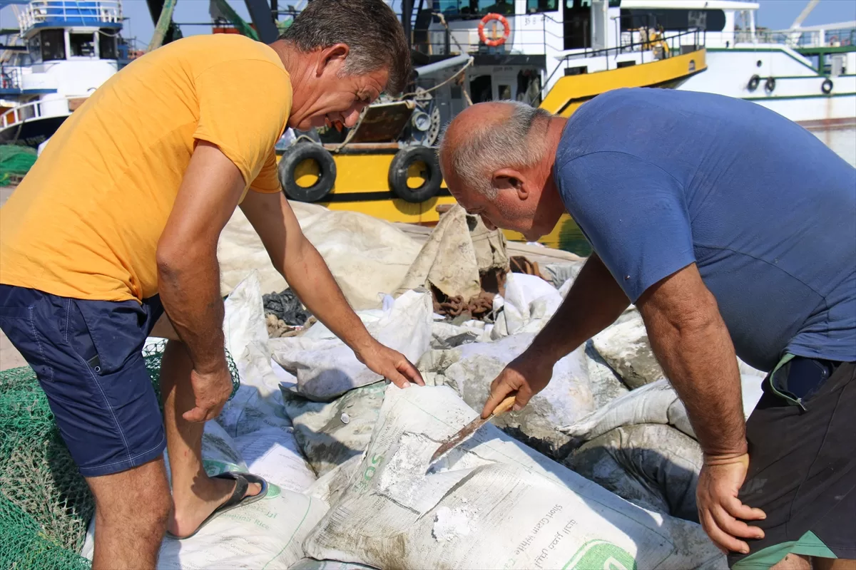 Mersin Su Ürünleri Kooperatifleri Bölge Birliği Başkan Yardımcısı Yalçın Sakın, ağa takılan çuvalları başka bir balıkçı teknesinin yardımıyla kıyıya getirdiklerini söyledi.