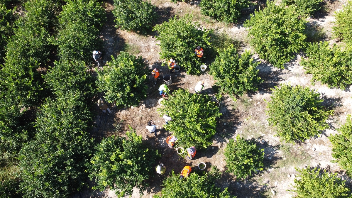 Narenciye üretimiyle öne çıkan ilçede yetiştirilen enterdonato ve mayer cinsi limonun hasadı için tarım işçileri sabahın erken saatlerinde bahçelere gitti.