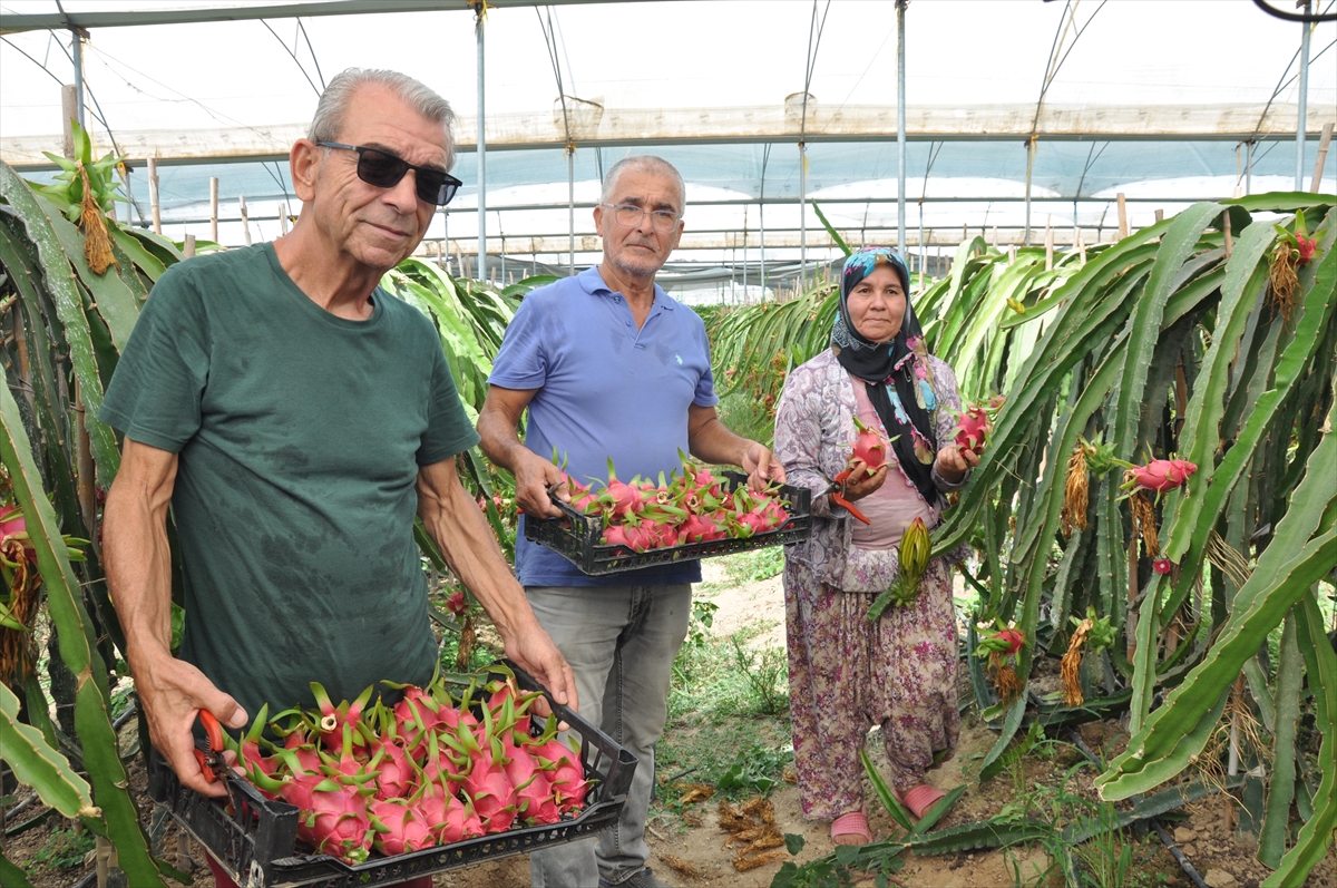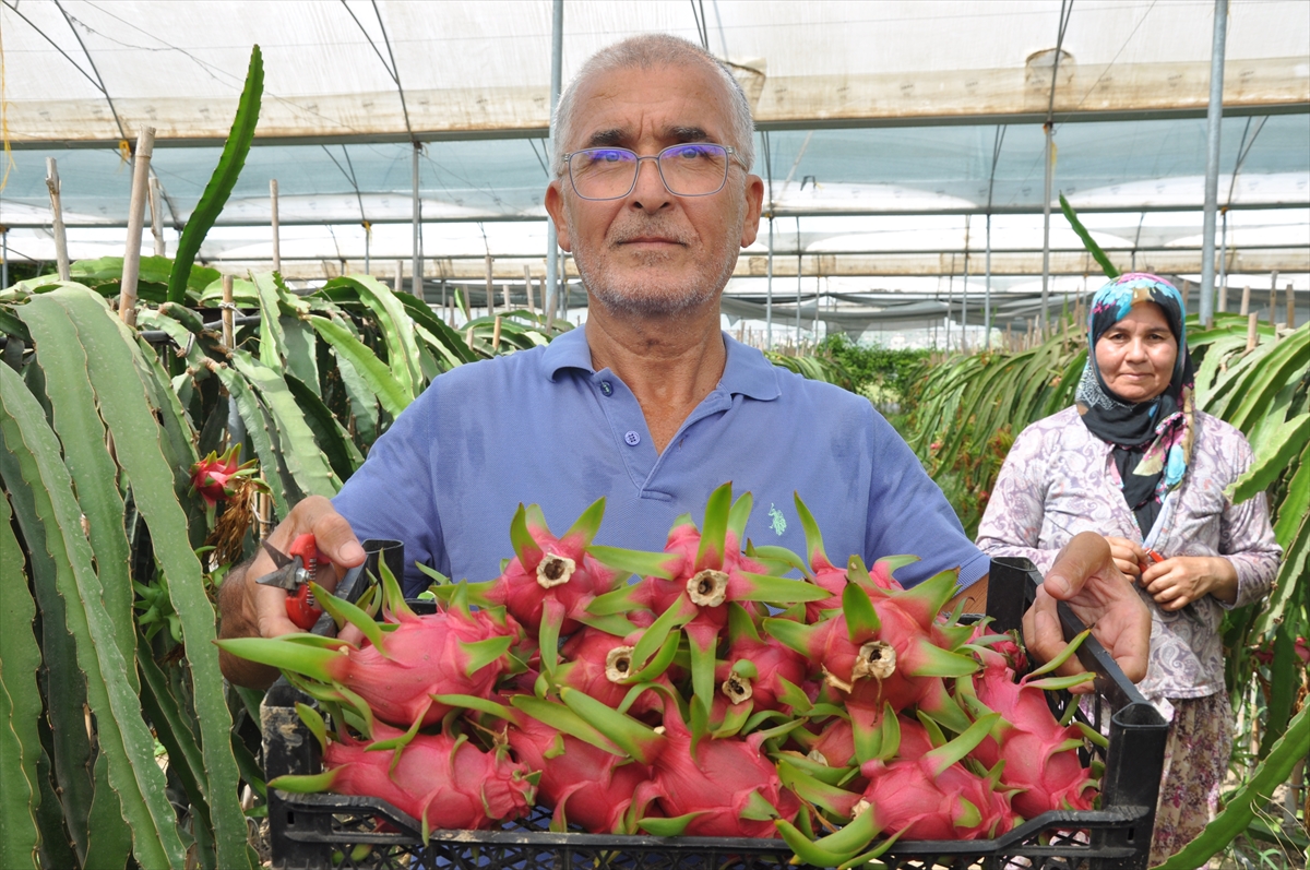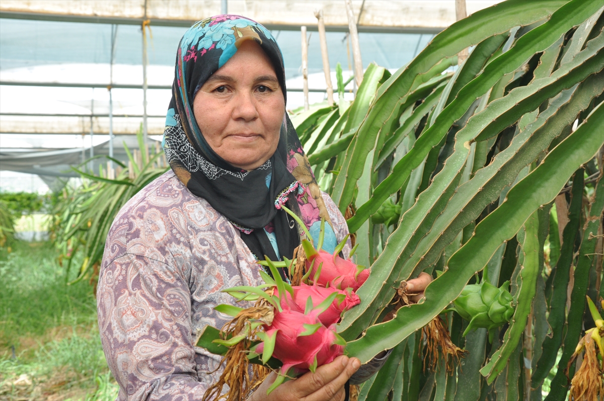 İlçede yaş meyve ve sebze ürünlerine alternatif olması amacıyla örtü altında yetiştirilen ejder meyvesinde hasat dönemi başladı.