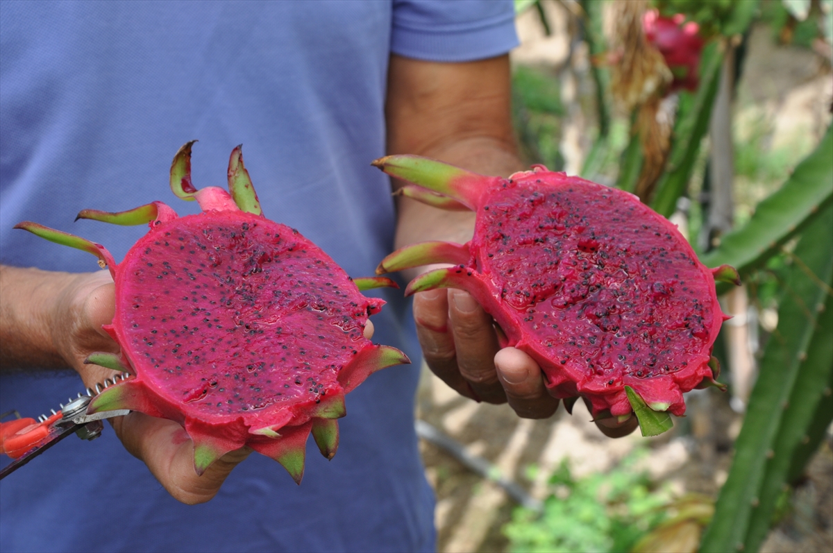 Üreticilerden Feza Önal, gazetecilere, 7 yıl önce 3 dönüm alanda başladığı ejder meyvesi yetiştiriciliğini yatırımcıların desteğiyle 35 dönüme çıkardığını söyledi.