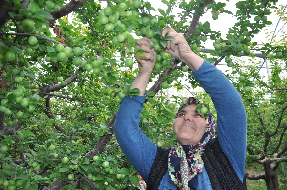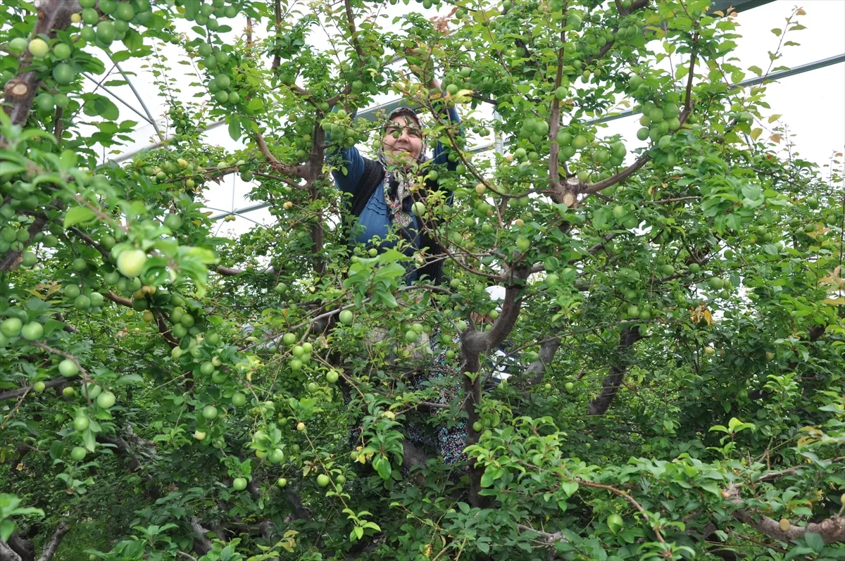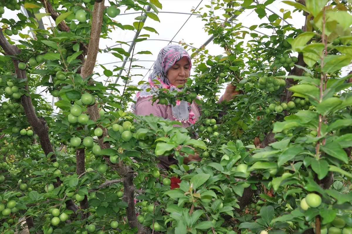 Yaş meyve sebze üretimiyle öne çıkan ilçede, örtü altında yetiştirilen erikte hasat mesaisi devam ediyor.