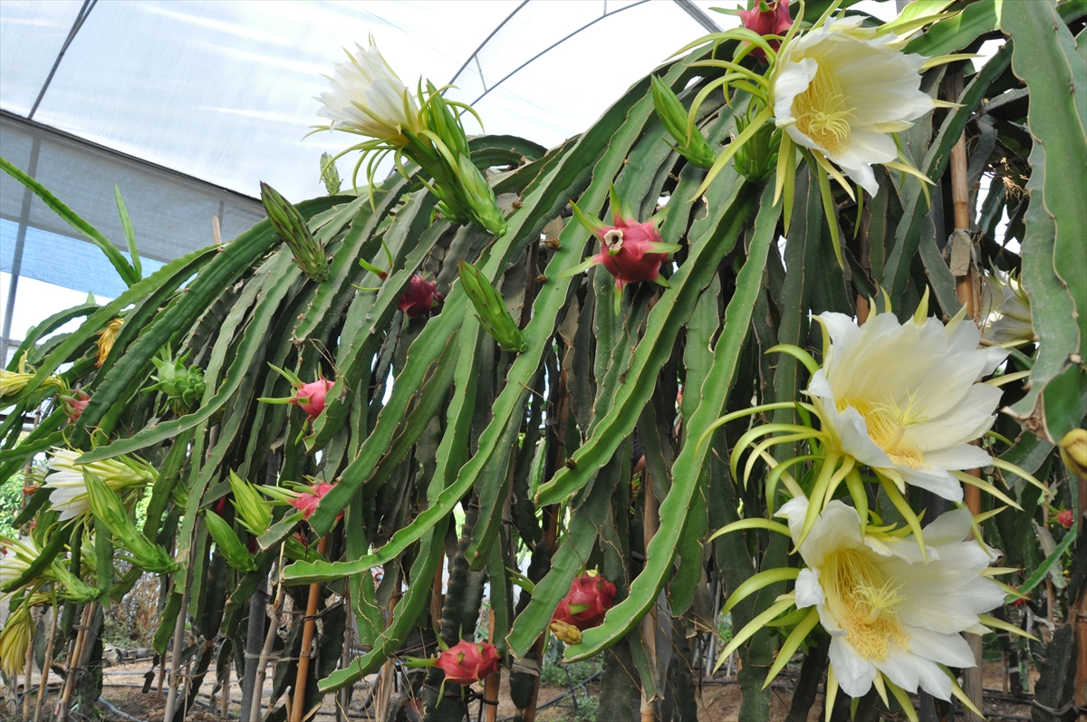 İlçede yaş meyve ve sebze ürünlerine alternatif olması amacıyla yaklaşık 150 dönümlük örtü altında yetiştirilen ejder meyvesinde hasat dönemi başladı.