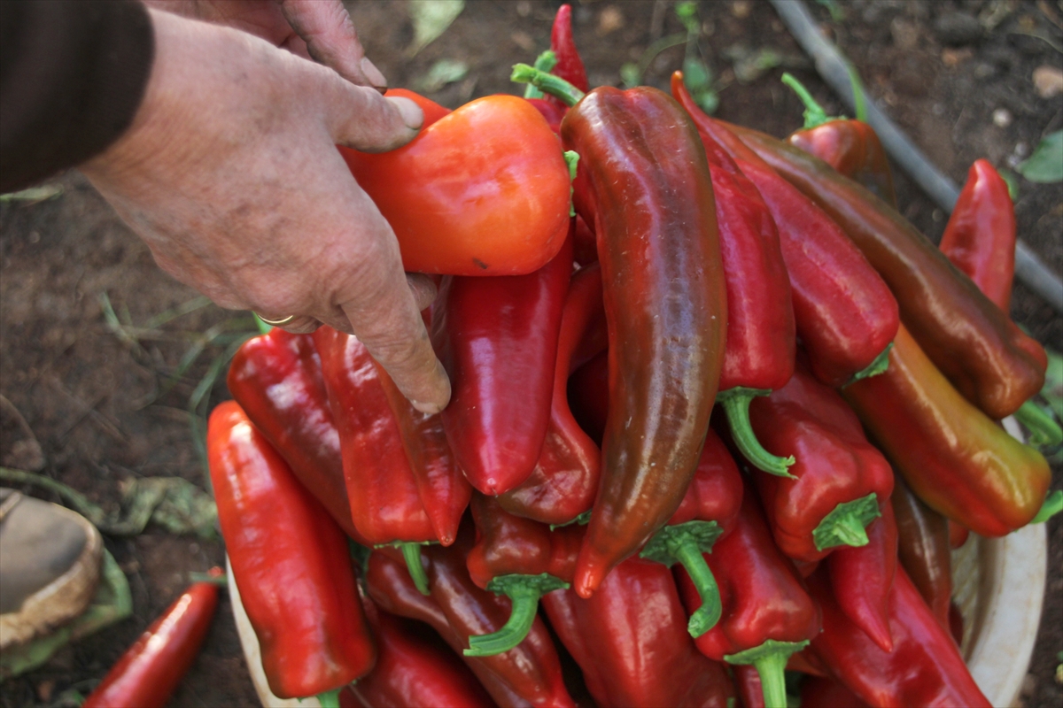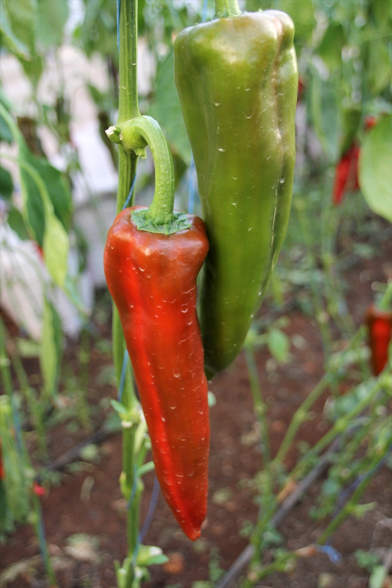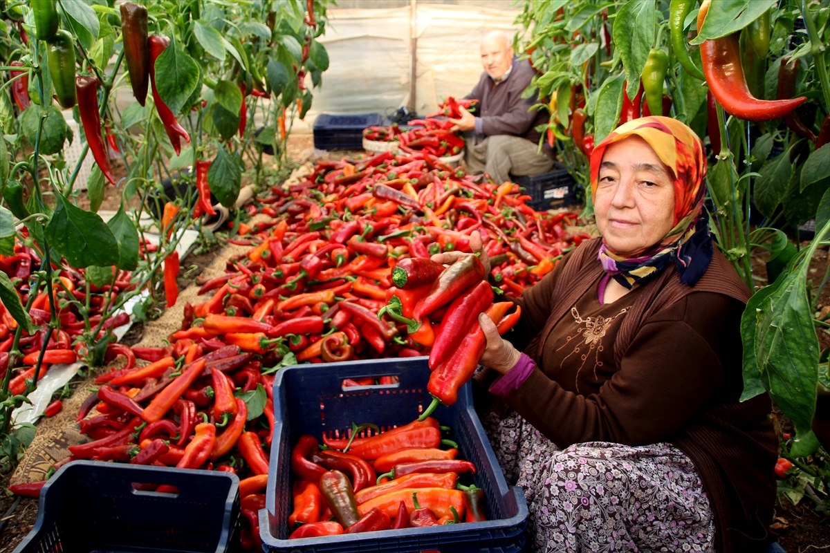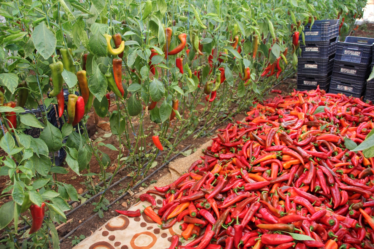 İlçede, salçalık ve kırmızı biber olarak da bilinen kapya biberin seralarda hasadı başladı.