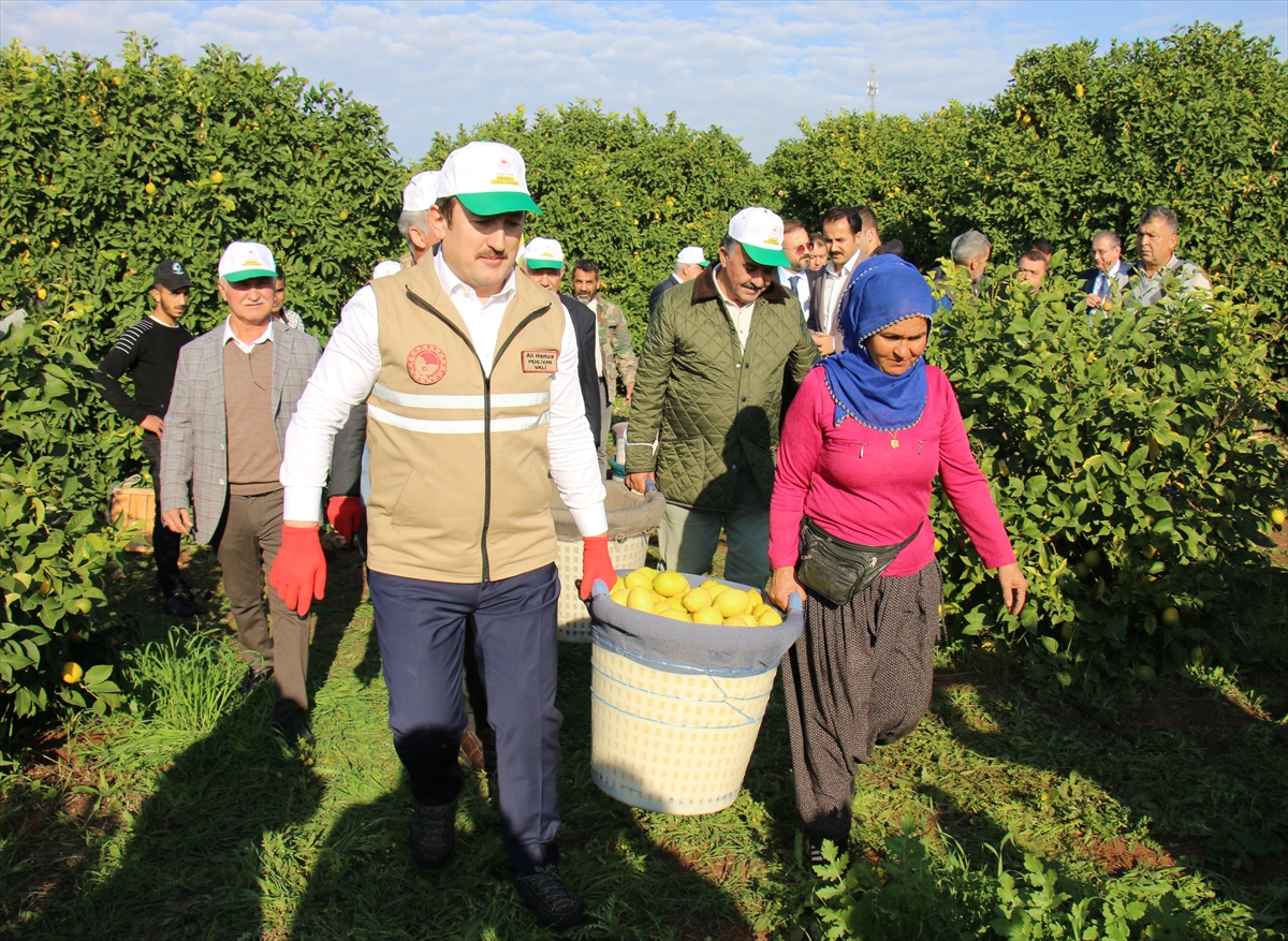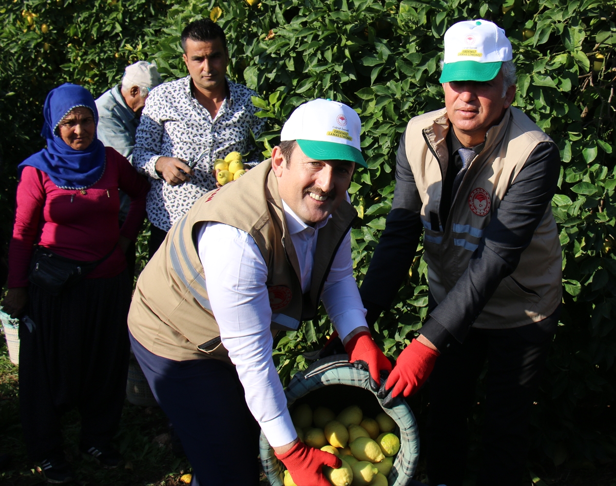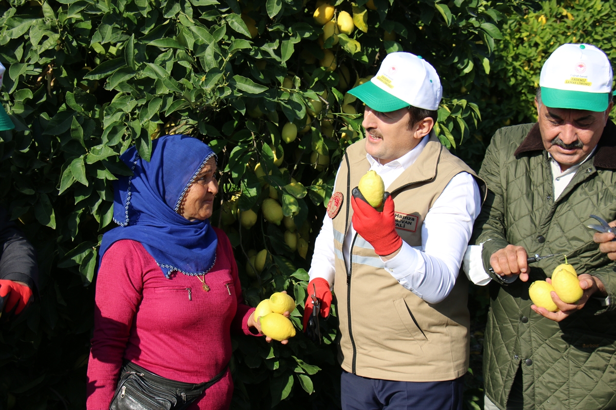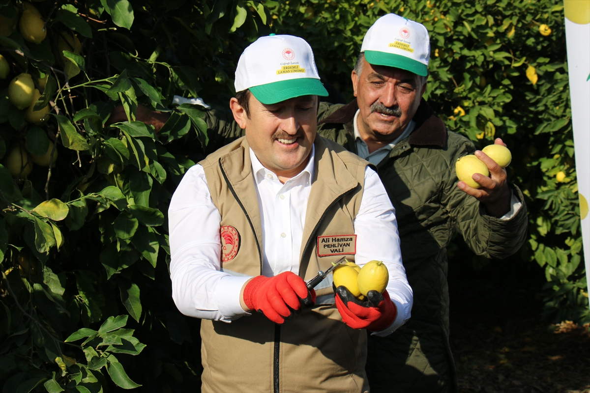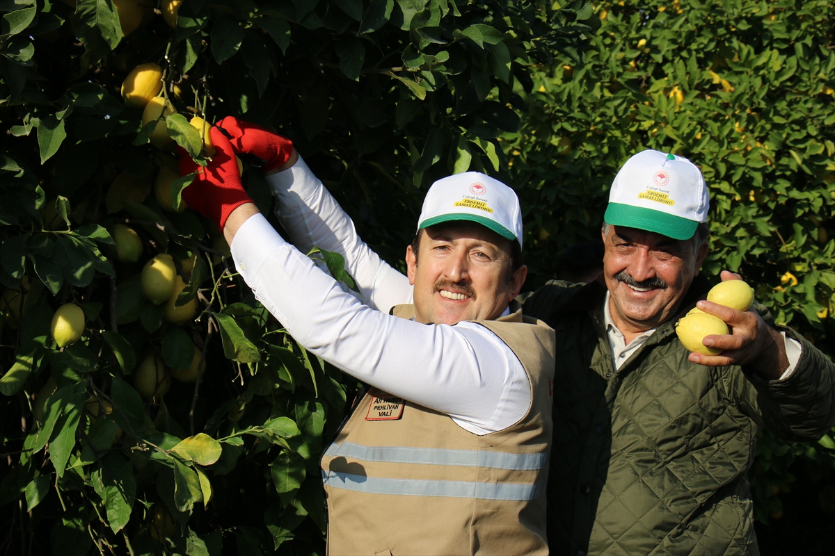 Etkinliğe katılan Vali Ali Hamza Pehlivan, üreticilerle dalından topladığı limonları sandıklara yerleştirdi.